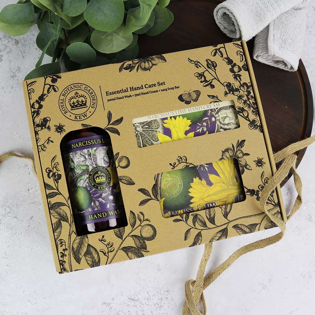 Pamper yourself or someone special with the Kew Gardens Narcissus Lime Essential Hand Care Set Gift Box.