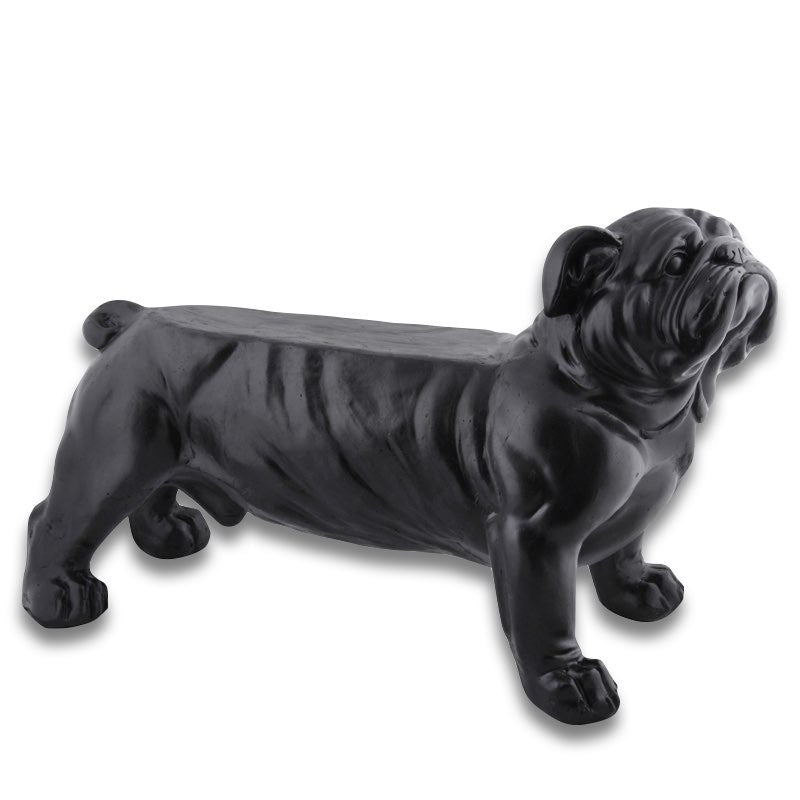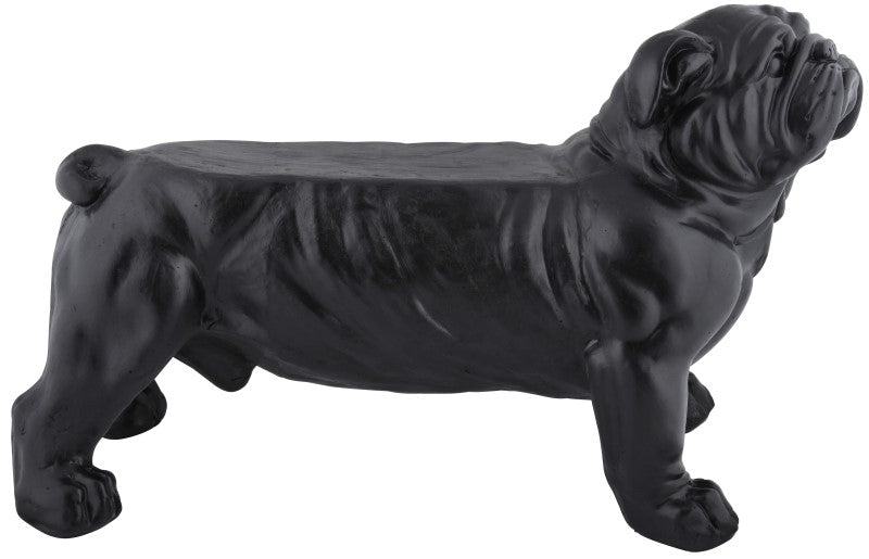 This artistic furniture and ornament represents a Bull dog with a black finish and is adorable from top to tail.