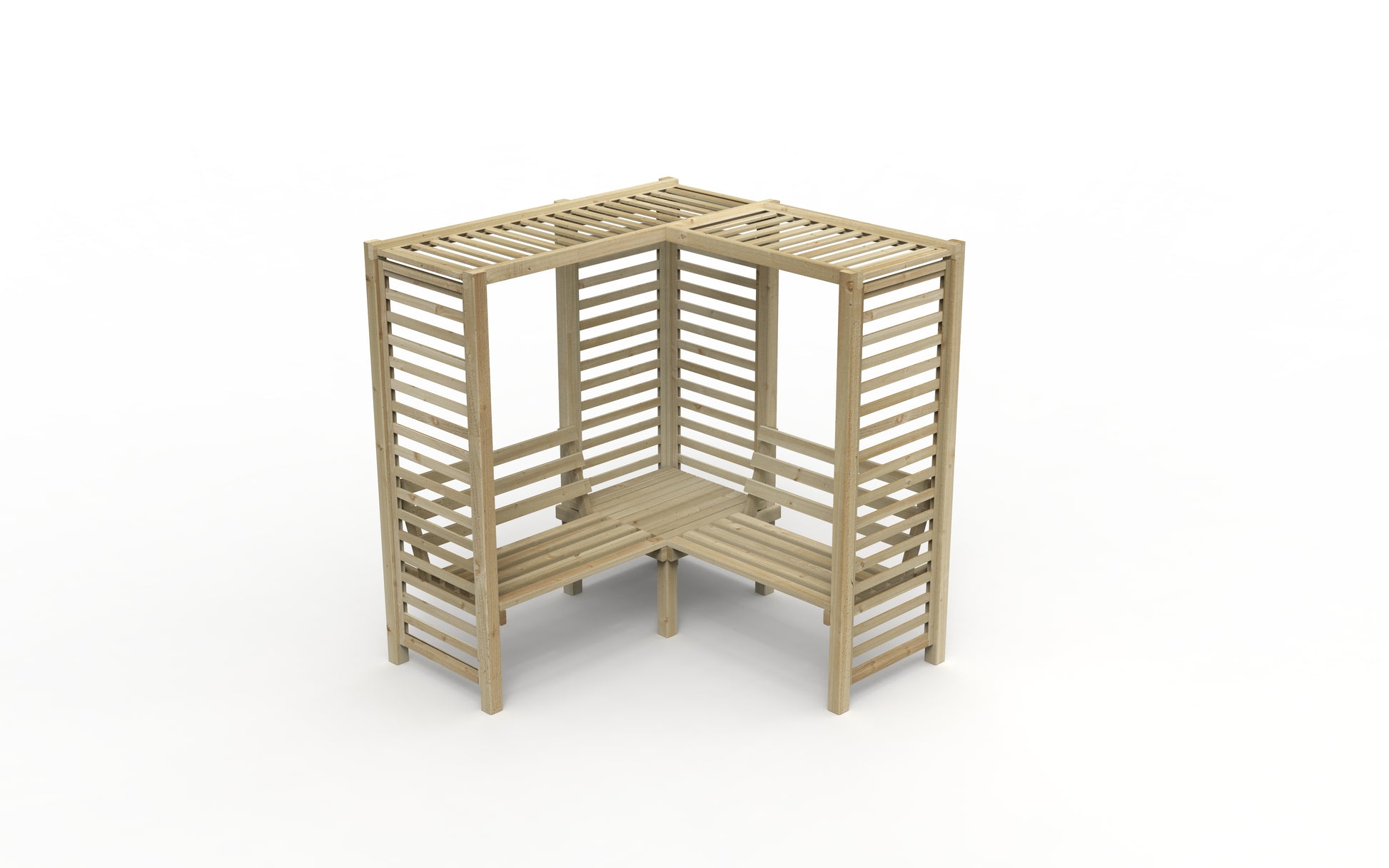 The contemporary slatted Firenze Corner Arbour from Forest is a stylish garden feature that combines two benches and a right-angled design. Unlike traditional arbours, it offers more seating and turns any garden corner into a relaxing retreat.