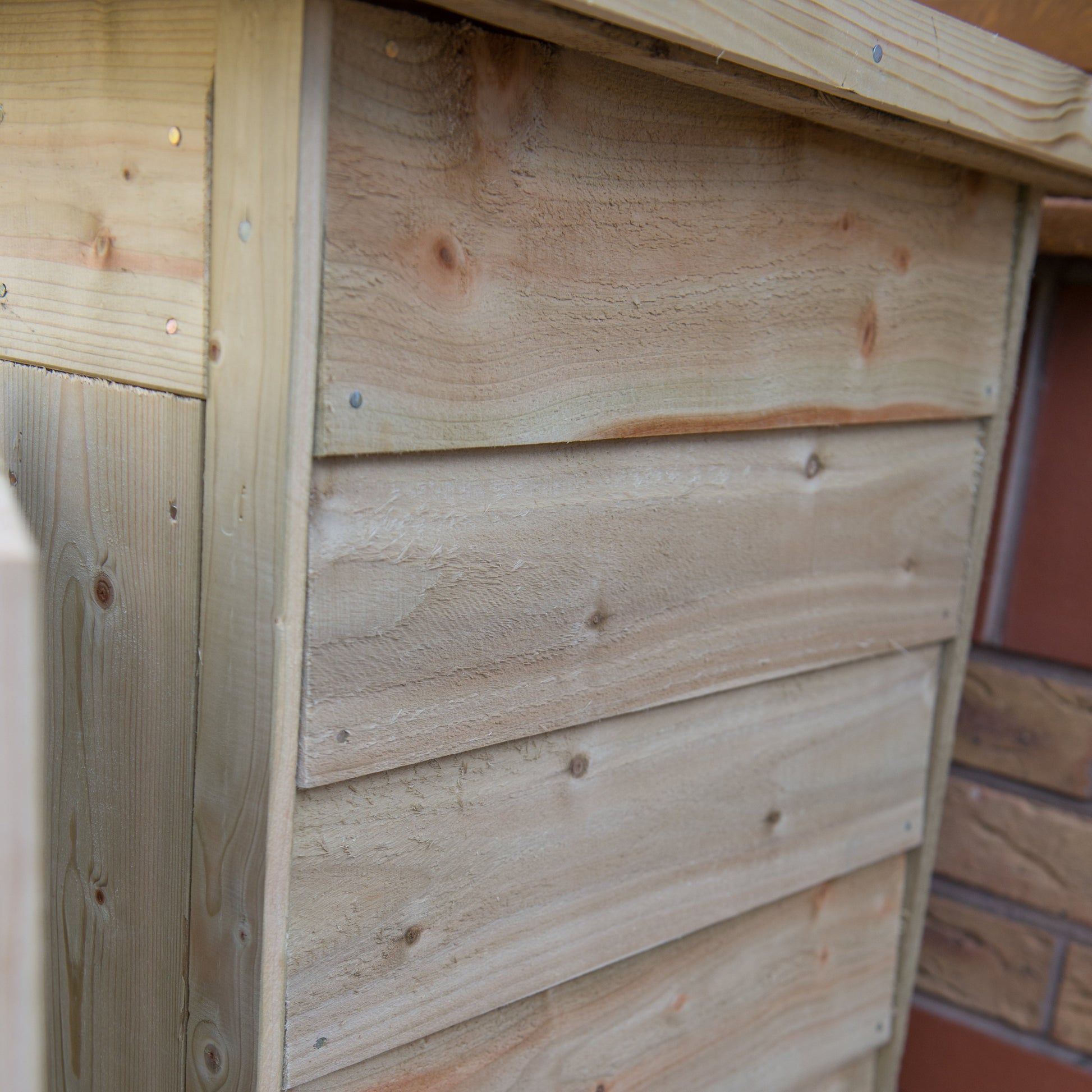 This versatile and practical storage solution has a 600-litre capacity, perfect for storing various tools and equipment. Its compact footprint and sloping Pent roof design make it space-saving and adaptable to any outdoor area. Made with Pressure Treated timber and Tongue & Groove panels, it's durable and attractive.