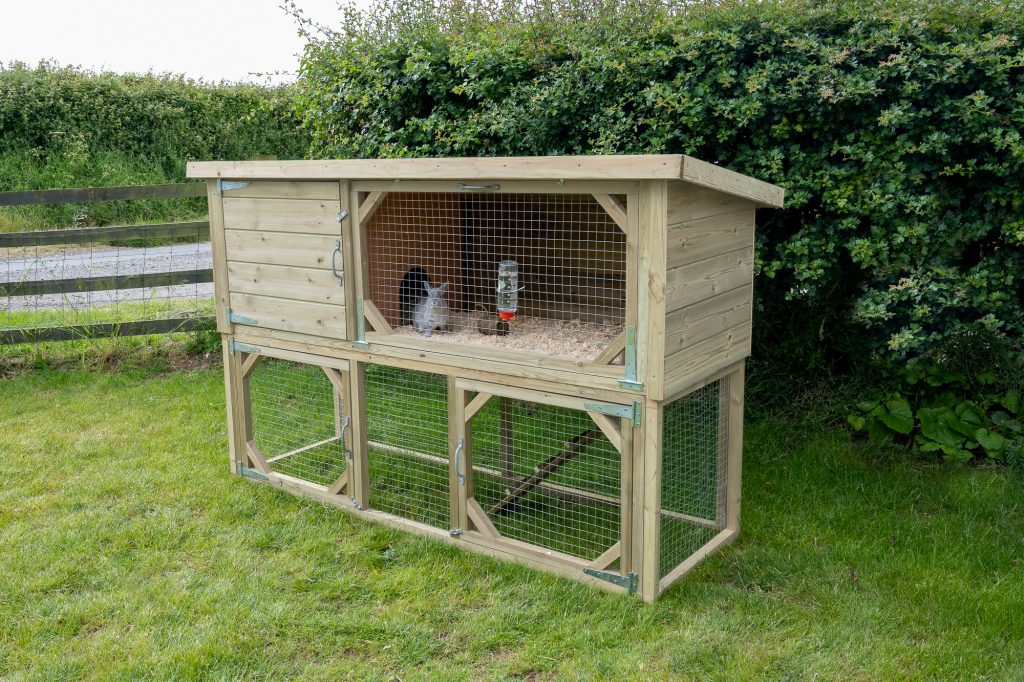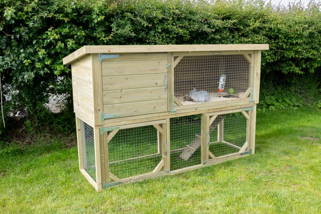 This wooden hutch with run is the ideal home for rabbits or guinea pigs, providing ample living space for one or two pets.