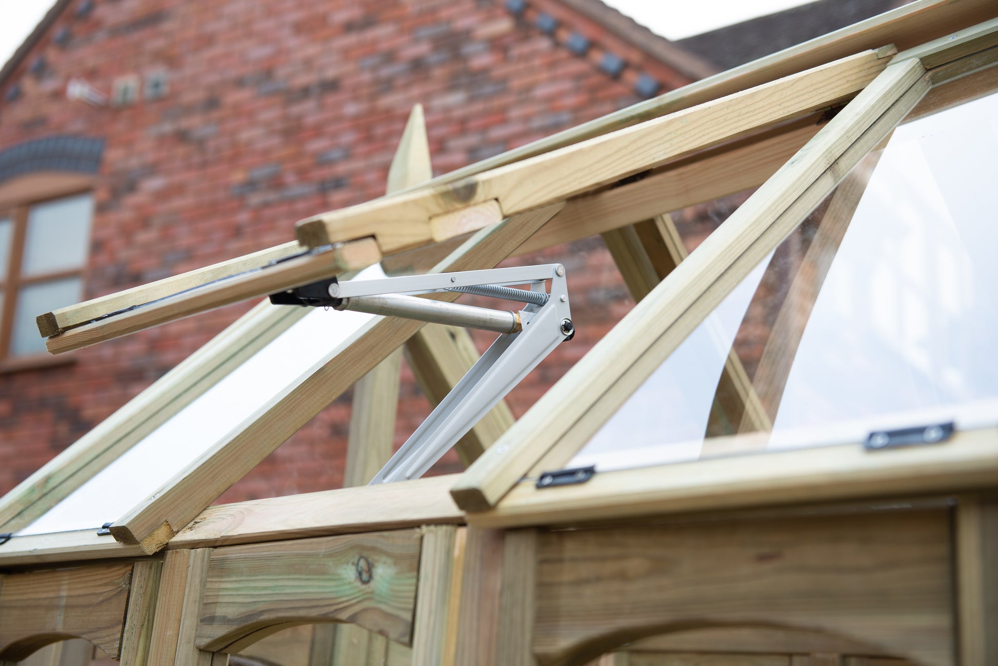 The Forest Garden Victorian Walk Around Greenhouse offers ample air-flow and temperature control with its opening windows and (optional extra) auto vent. Featuring safe styrene glazing and Pressure-Treated timber, this greenhouse comes with a 15-year guarantee against rot and fungal decay. Easy to assemble with fixings and instructions included.