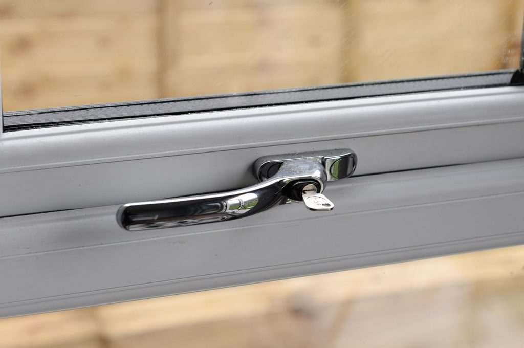 - Window colour: Anthracite grey externally with grained finish Smooth white internally Window locking: Two double clasp, mushroom-headed espagnolettes