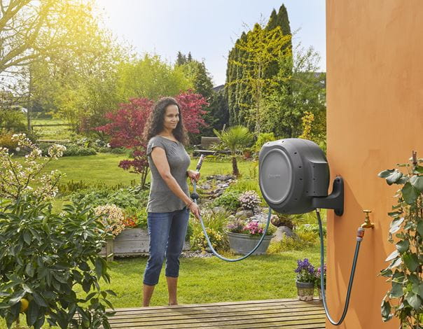 With the GARDENA Wall-Mounted Hose Box RollUp 30, you receive a wall-mounted solution for your garden irrigation needs.