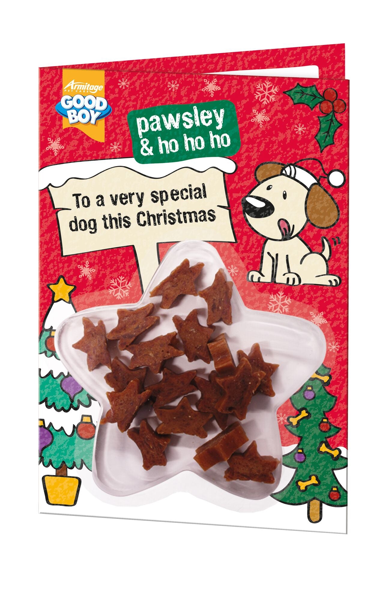 This beautifully crafted Good Boy Christmas Card allows you to send your canine friend a Christmas card with a difference as it contains super duper tasty 100% natural chicken breast meat chewy treats!
