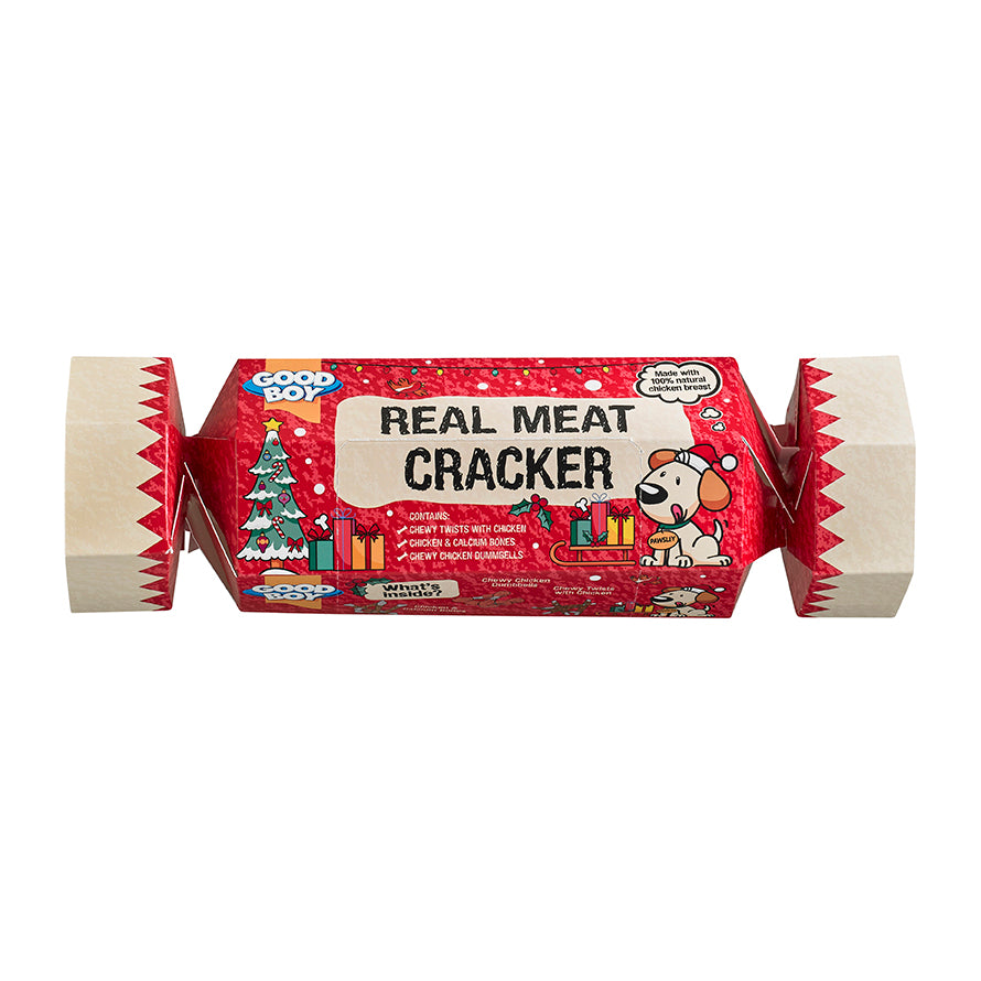 Gift this festive chicken treat cracker to your dog at Christmas.