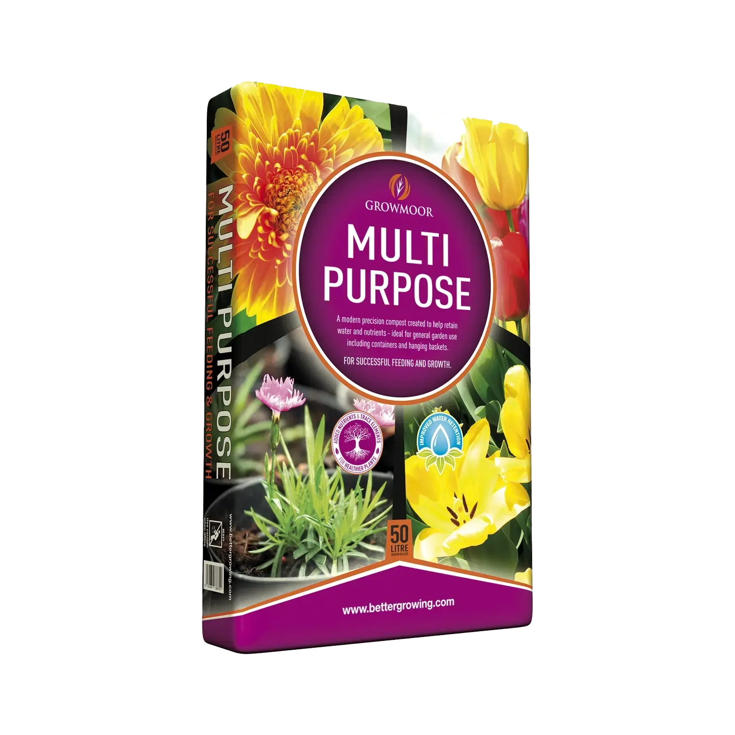 Growmoor Multi-Purpose Compost is a premium blend engineered for versatile gardening applications.