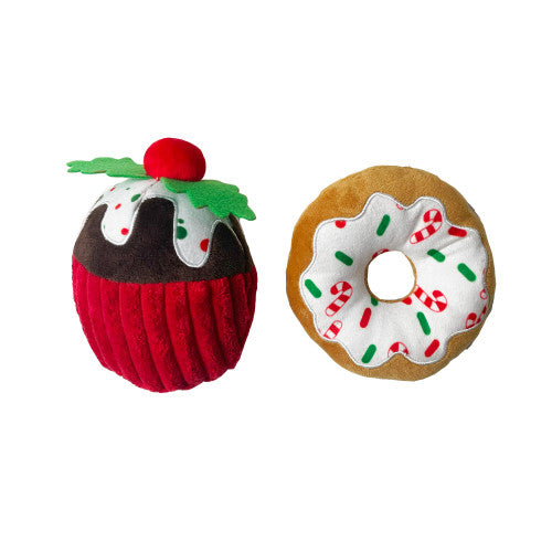 Happy Pet Christmas Donut and Pudding Soft Dog Toy