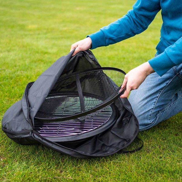 Havana Portable Firepit is perfect for smaller outdoor spaces, camping, festivals, the beach, or anywhere. Hard-wearing powder-coated steel with black high-temperature paint finish. Chrome-plated grill for barbecue-style cooking. The fuel grate increases airflow, keeping flames burning for longer. Three leg design provides stability and increases airflow for heat dissipation.