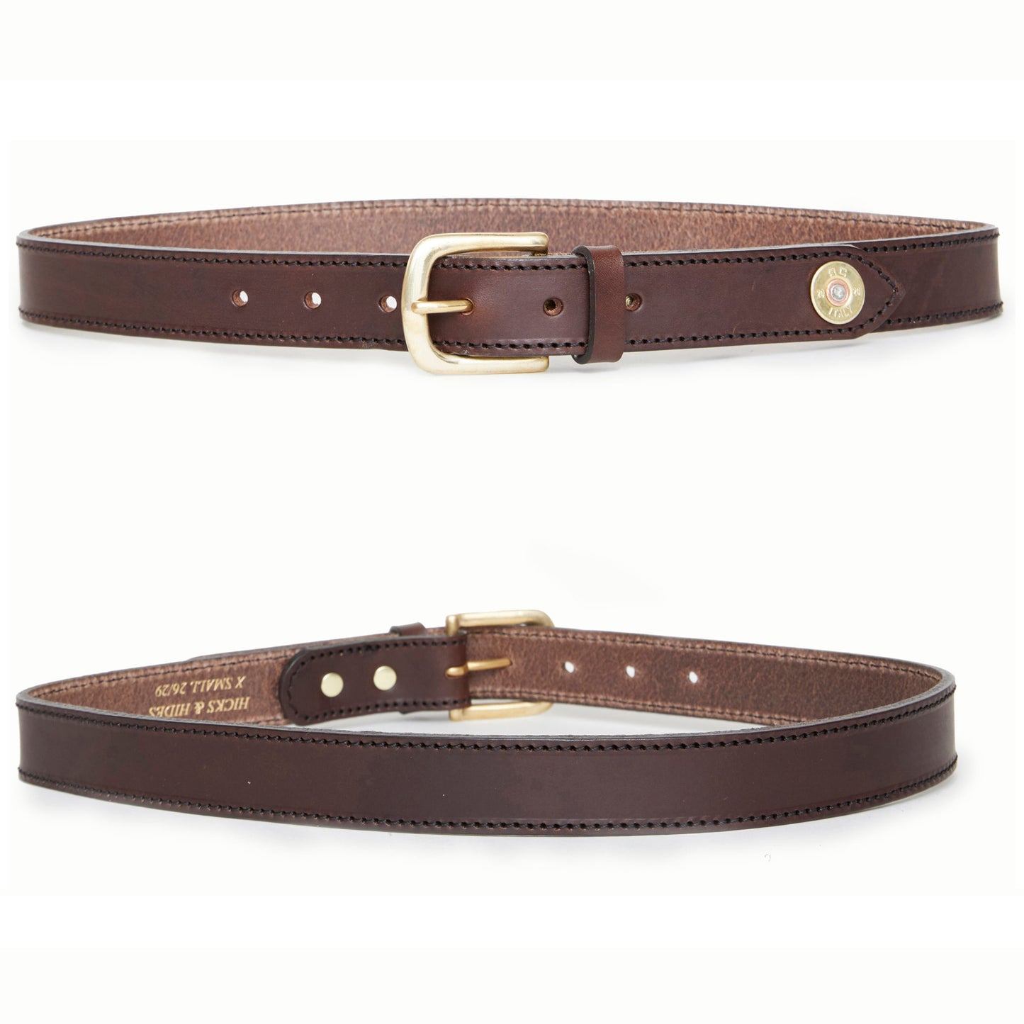 Bridle leather 1 1/4inch belt with brass Westend buckle and the option of displaying 20bore cartridges just on the tip.
