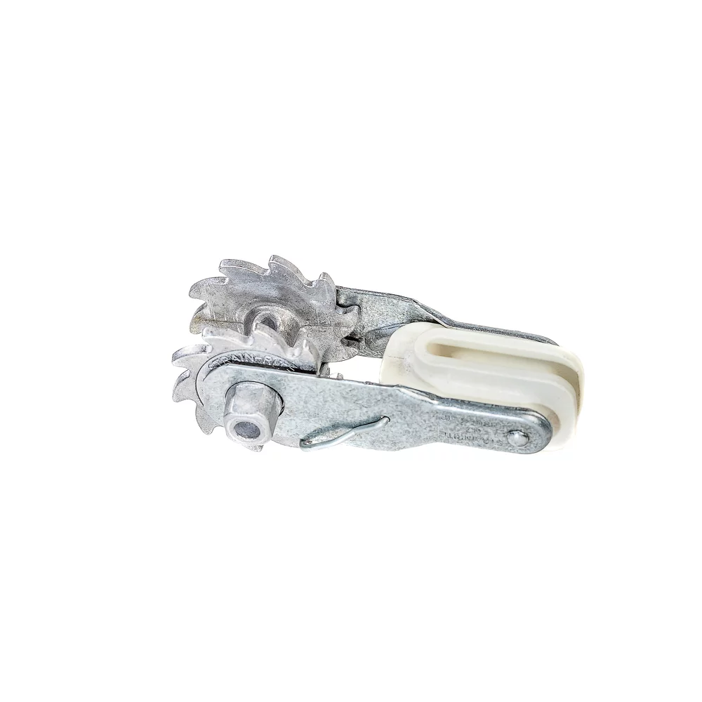 Its insulated construction ensures safe handling, while the ratchet mechanism allows for precise tension adjustment. Re-tensioning can be performed effortlessly at any time, making it ideal for maintaining wire integrity in demanding environments. This tensioner combines durability with ease of use, providing reliable performance for professional fencing and wire installation tasks.