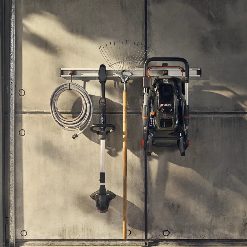 Organise your garden tools and save space with the Husqvarna Aspire Storage Hook Kit.