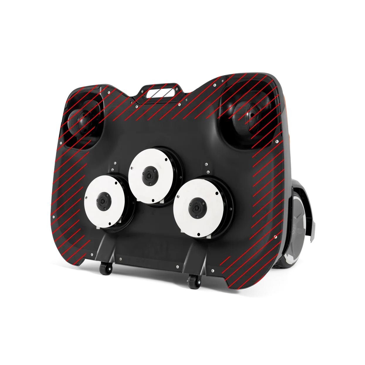 Totally 15 high-speed steel razor blades keep the turf at an excellent quality level. A Protection zone make that the risk for accidents where extremities touching the blades has been kept to a minimum. Easy maintenance and handling is possible by an ergonomic and unique service position, meaning the cutting deck can quickly be tilted for easy access to the blade discs or for hose washable cleaning (IPX5 classified).