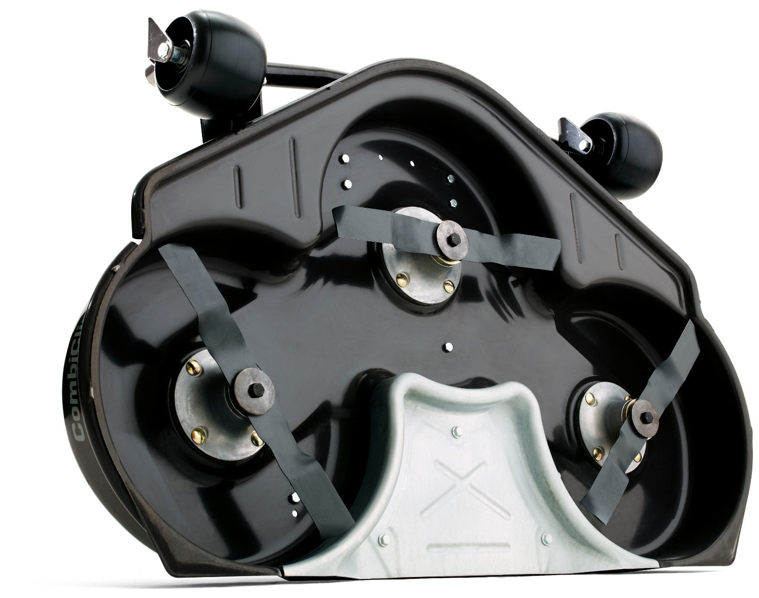 An innovative technical solution from Husqvarna results in a combination deck with the cutting methods mulching and rear discharge included in one and same deck. Heavy-duty deck design consist of 1-piece stamped steel plate.