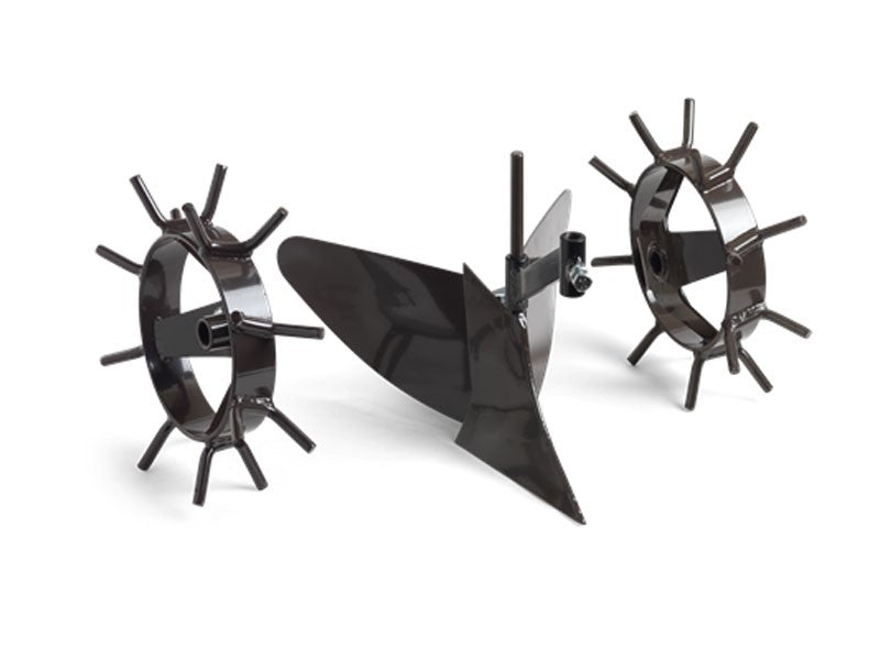 Husqvarna TF 325 Ridger Kit comes with metal wheels and creates ridges when planting potatoes, helping to protect against weeds and daylight.