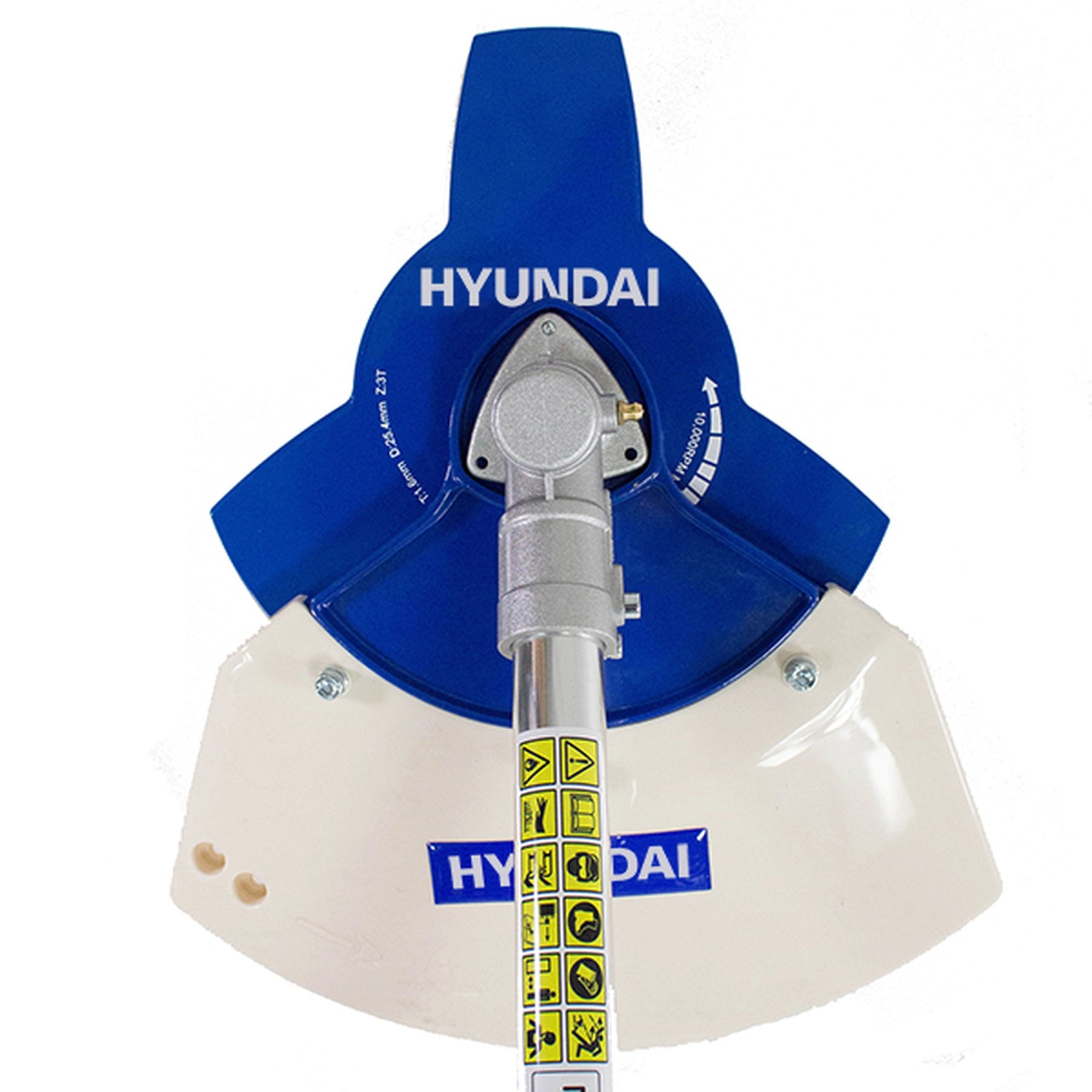 This petrol brushcutter's powerful 50.8cc 2-stroke Euro V Hyundai low-emission petrol engine with a soft recoil pull-start can handle even the toughest garden overgrowth to get your space looking neat and tidy in no time. The HYBC5080AV is suitable for both domestic and professional settings with its large 450mm cutting width from the nylon trimmer head and 255mm from either of the two steel cutter blades, allowing you to cut through large areas of overgrowth quickly and effectively. The nylon grass trimmer bump-feed head uses 2.5mm nylon cord and allows you to simply ‘tap and go’ if you need to release more nylon string. There are two blades included - the 3 tooth blade would be used for brambles, etc, and the 8 tooth blade is for thicker wood where a sawing action is required.