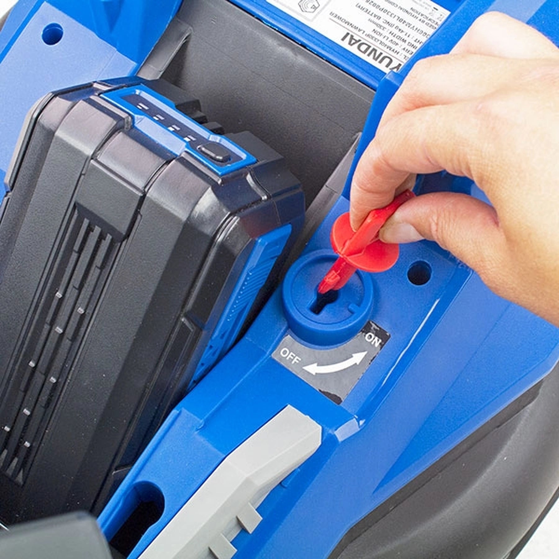 - In The Box - HYM40LI330P Battery Powered Lawnmower, 30L Hard Top Grass Collector, 40v 2.5ah Rechargeable Lithium-Ion Battery, Battery Charger, 2x Safety Keys & User Manual