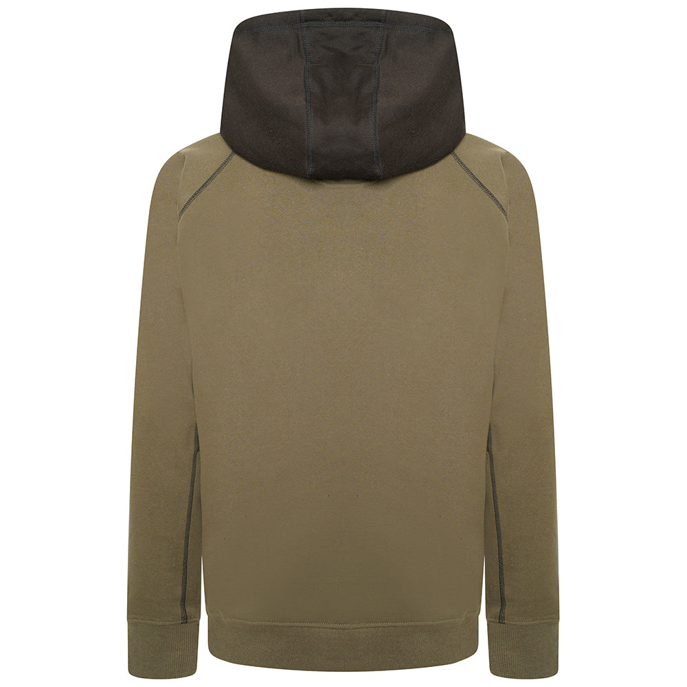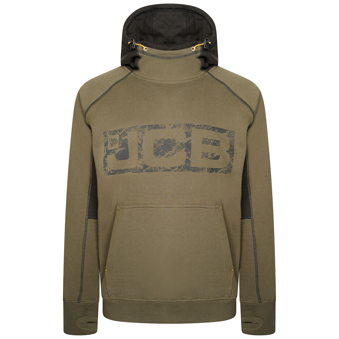 Constructed of heavyweight cotton-rich fabric for warmth and durability, this hoodie also features a kangaroo-style pocket and thumb grips for convenience. It's snood-style hood with a drawstring adds extra warmth and a fashionable look. Enjoy long-lasting comfort and stylish design with the JCB D-FX Trade Horton Hoodie.