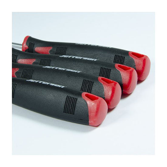 Jefferson 4 Piece Miniature Pick & Hook Set also come with TPR grips. The 4-pack includes, 1x Mini Awl Straight Tip, 1x Mini Hook Tip, 1x Mini 45° Bent Tip and 1x Mini 90° Bent Tip.