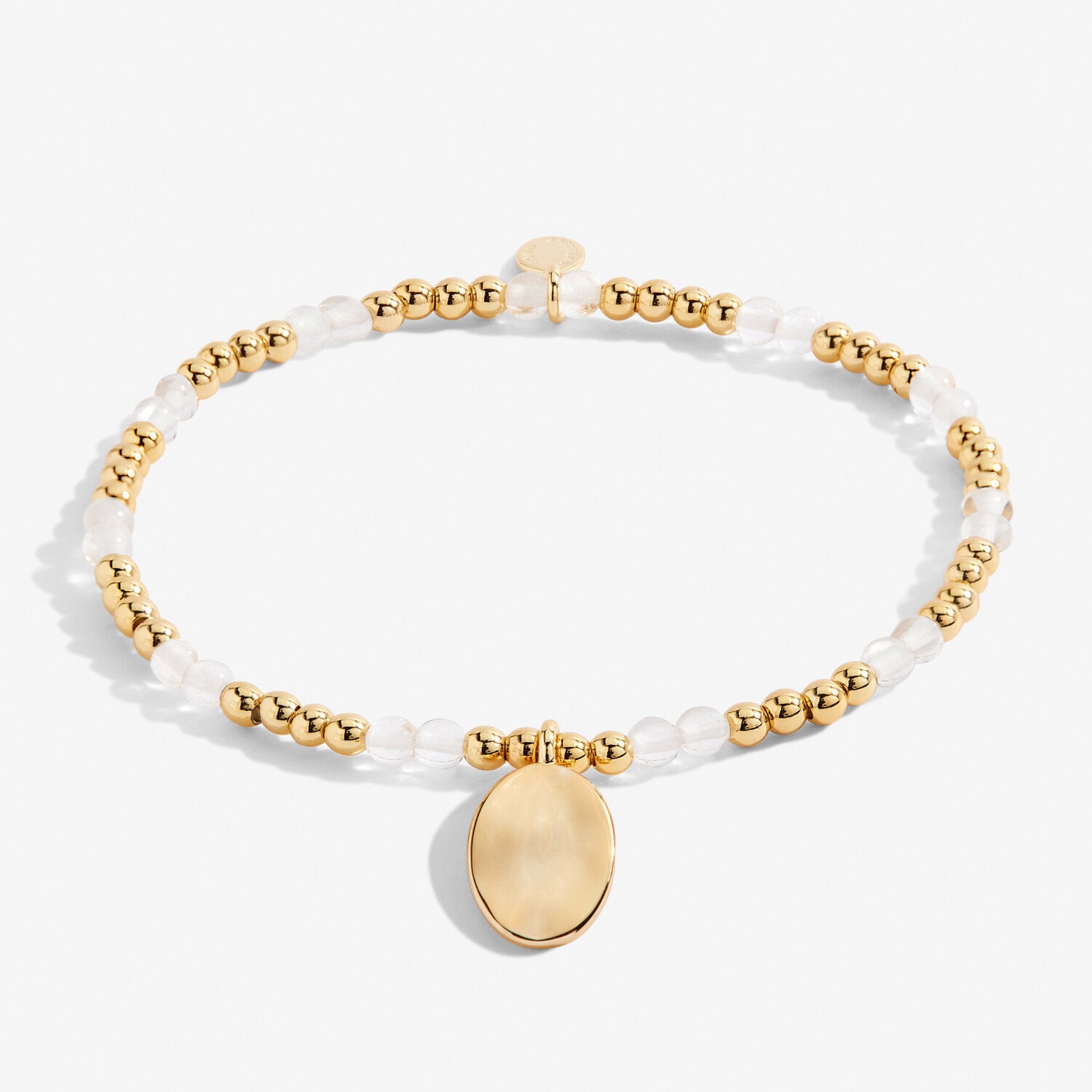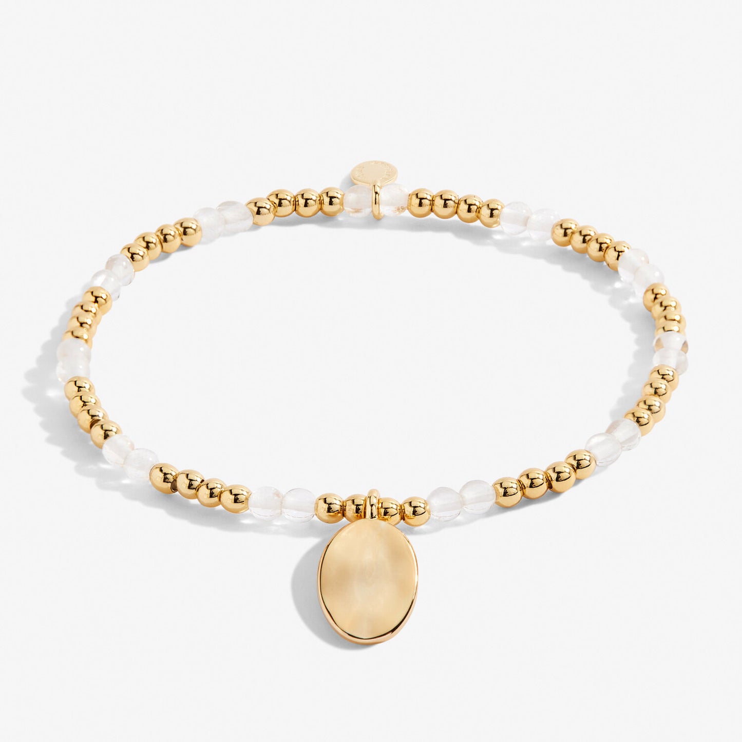 Featuring semi-precious rock crystal gemstones, it radiates natural beauty and is adorned with a stunning Gold-Plated charm. The bracelet’s stretch-bead design ensures a comfortable fit for every wrist. Please note that as natural stones are used in this collection, each piece may have slight colour variations. Designed in the UK, this bracelet makes a meaningful and thoughtful gift.