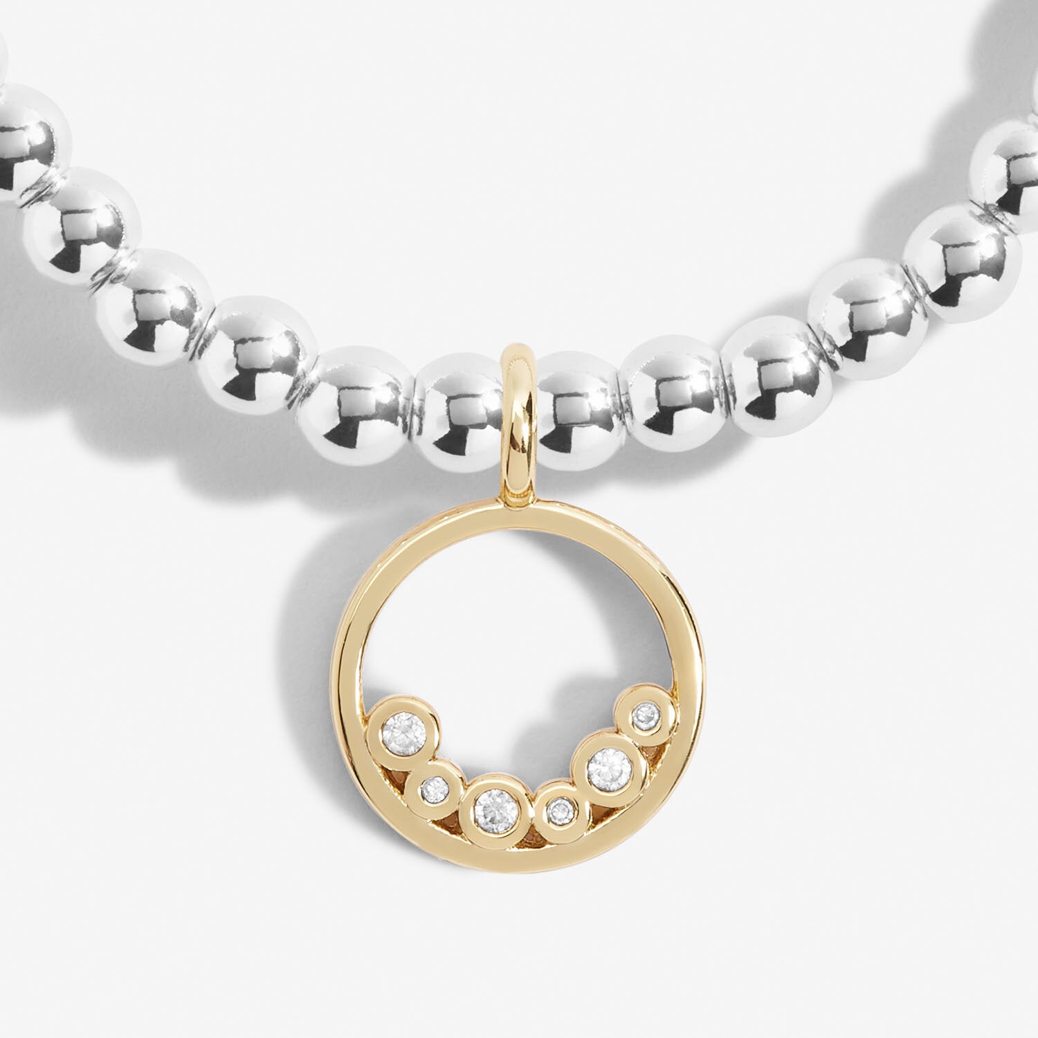 Featuring a beautiful stretch design with a gold-plated encrusted hoop charm, this bracelet is available in silver and gold plating. Wrapped around a card with a sweet message, it makes for a thoughtful and meaningful gift. One size fits all, and it's designed in the UK, making it a special addition to anyone's collection.
