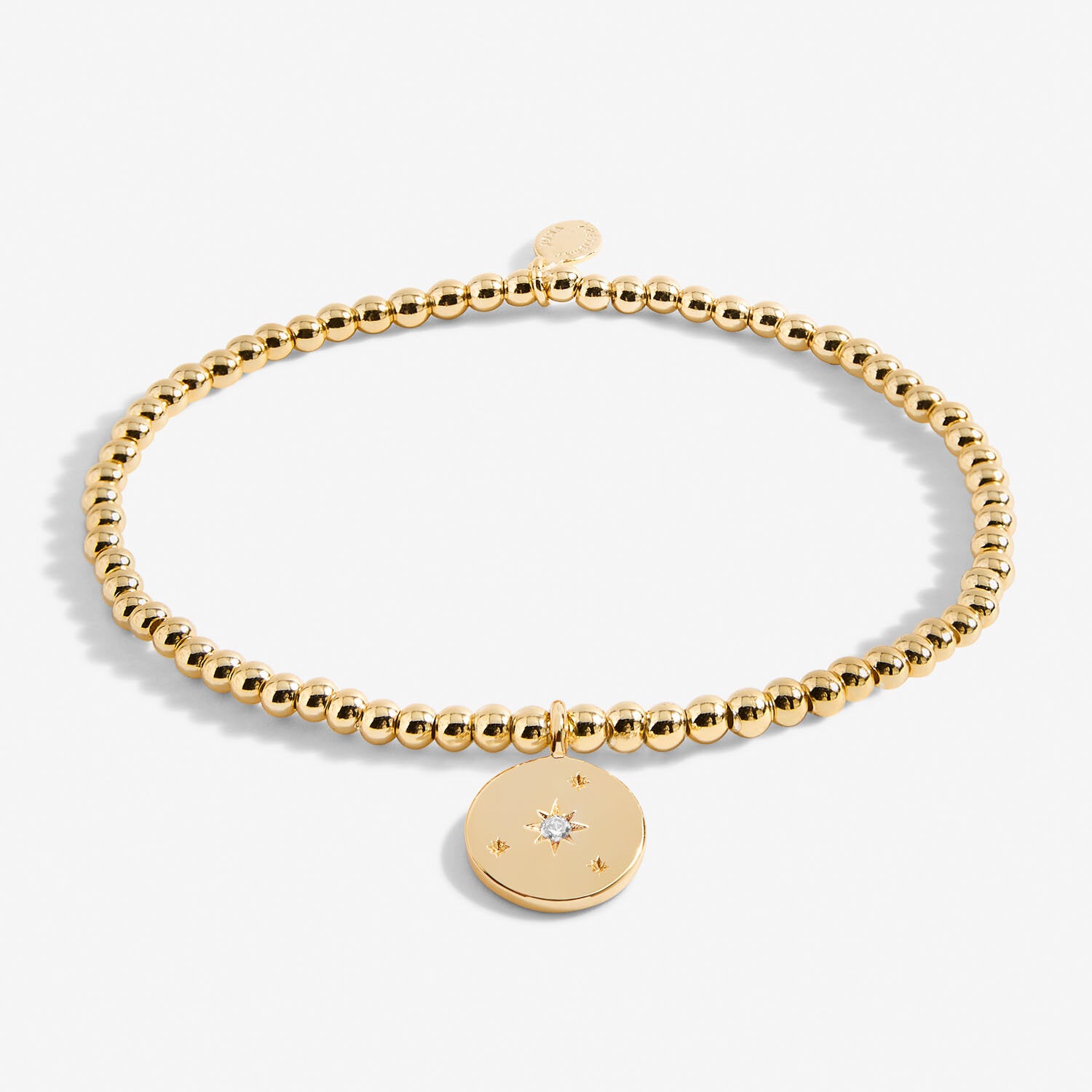 This gold-plated bracelet features a celestial disc charm and a stretch design for a perfect fit. Wrapped with a sweet sentiment on a card, it makes a thoughtful gift. One size fits all, and it’s designed and personalised in the UK, making it a special piece for anyone.