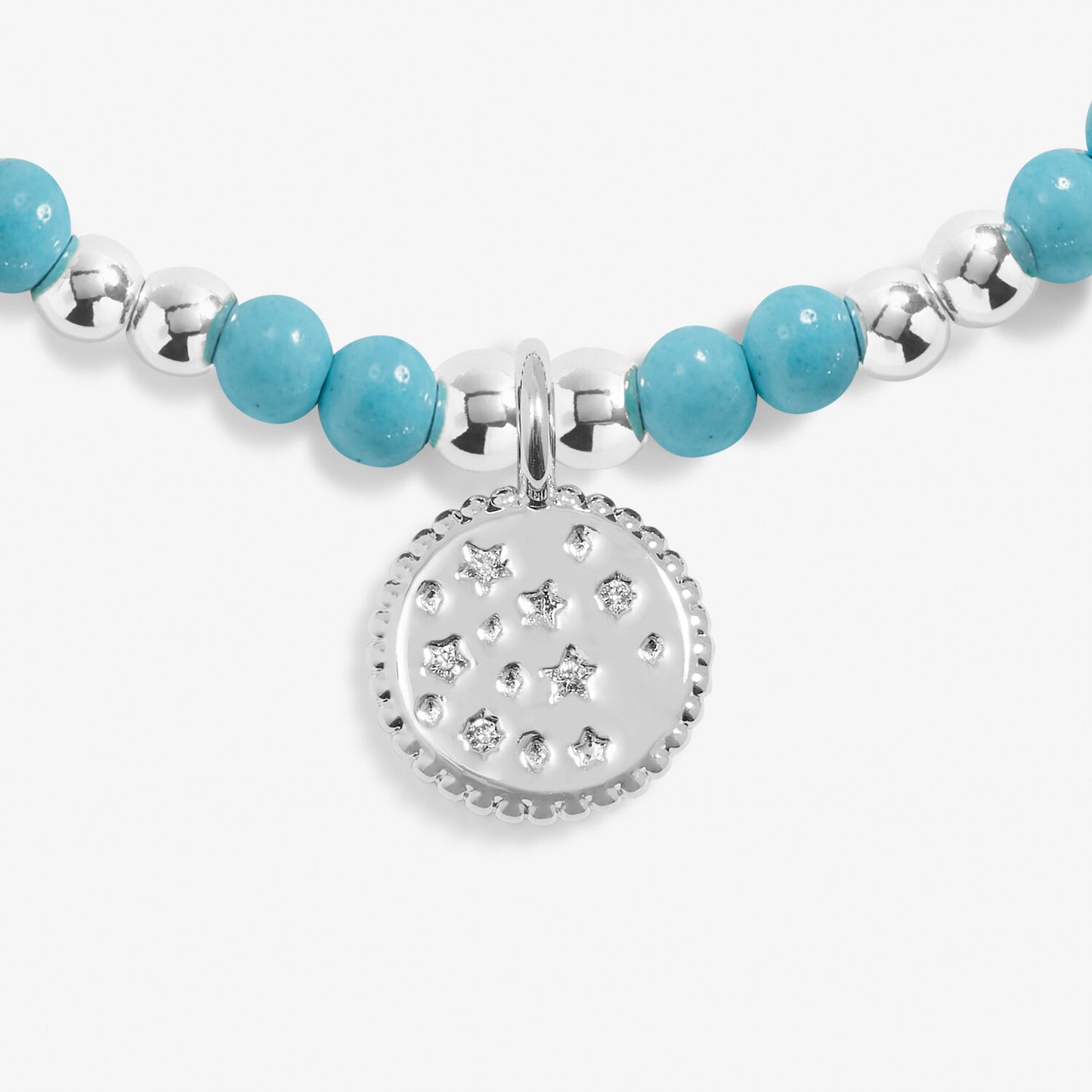 Featuring beautiful Turquoise gemstones and a sparkling silver-plated disc charm, it also includes a heartfelt poem. The bracelet is silver-plated for a timeless finish and fits all sizes. Made with real semi-precious gemstones, each piece may vary slightly in colour. Designed and personalised in the UK, this bracelet is a perfect addition to any little wrist stack.