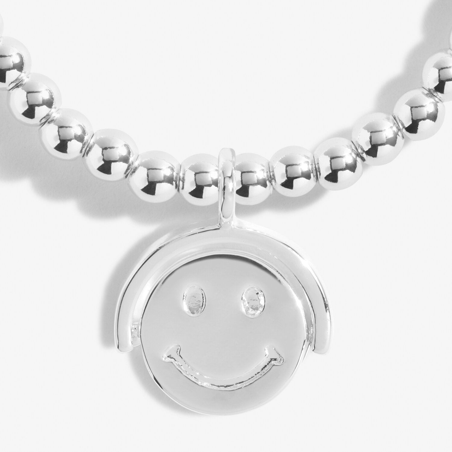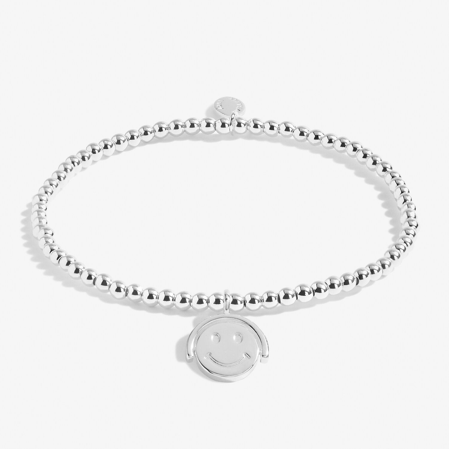 Part of the adorable collection, this bracelet features a silver-plated stretch design, perfect for smaller wrists. The charming smiley face charm adds a touch of fun, while the sentiment-stamped card makes it a thoughtful gift. Designed to be stackable, this bracelet is the perfect way for kids to create their own shining wrist stack.
