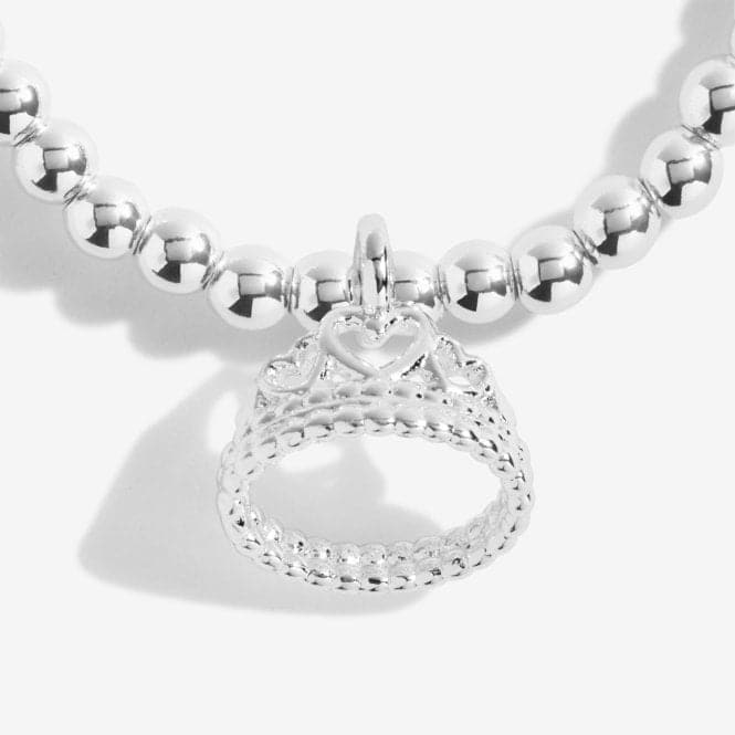 Featuring silver-plated beads and a sparkling tiara charm, this bracelet adds a touch of royalty to any outfit. The stretch design ensures a comfortable fit for little wrists, making it easy to wear every day. Presented on a stylised card, it’s framed by a heartfelt poem that captures the magic of being a princess. Part of the Children’s A Little collection, this bracelet is a charming and thoughtful gift that will be cherished.