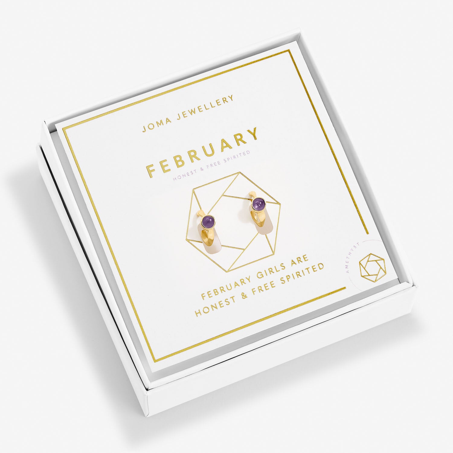 Joma Jewellery Gold Birthstone February Hoop Earrings