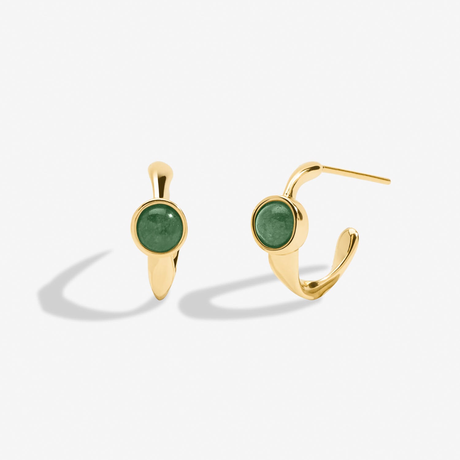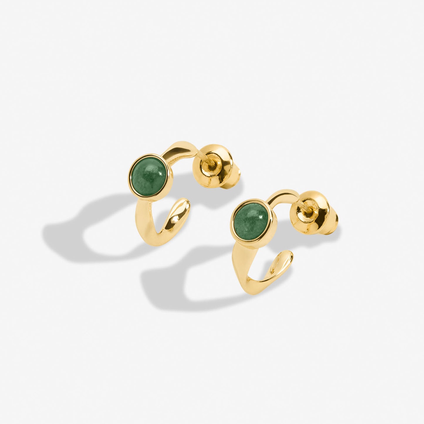 The gold-plated huggie-style hoops feature a stunning Green Agate birthstone. Perfect for stacking or gifting, they add a touch of style and sentiment to any occasion.