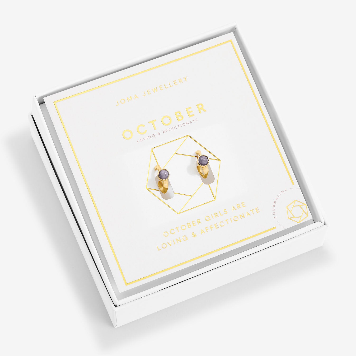 - The October Birthstone Hoop Earrings feature a stunning Tourmaline birthstone at the centre of a gold-plated design