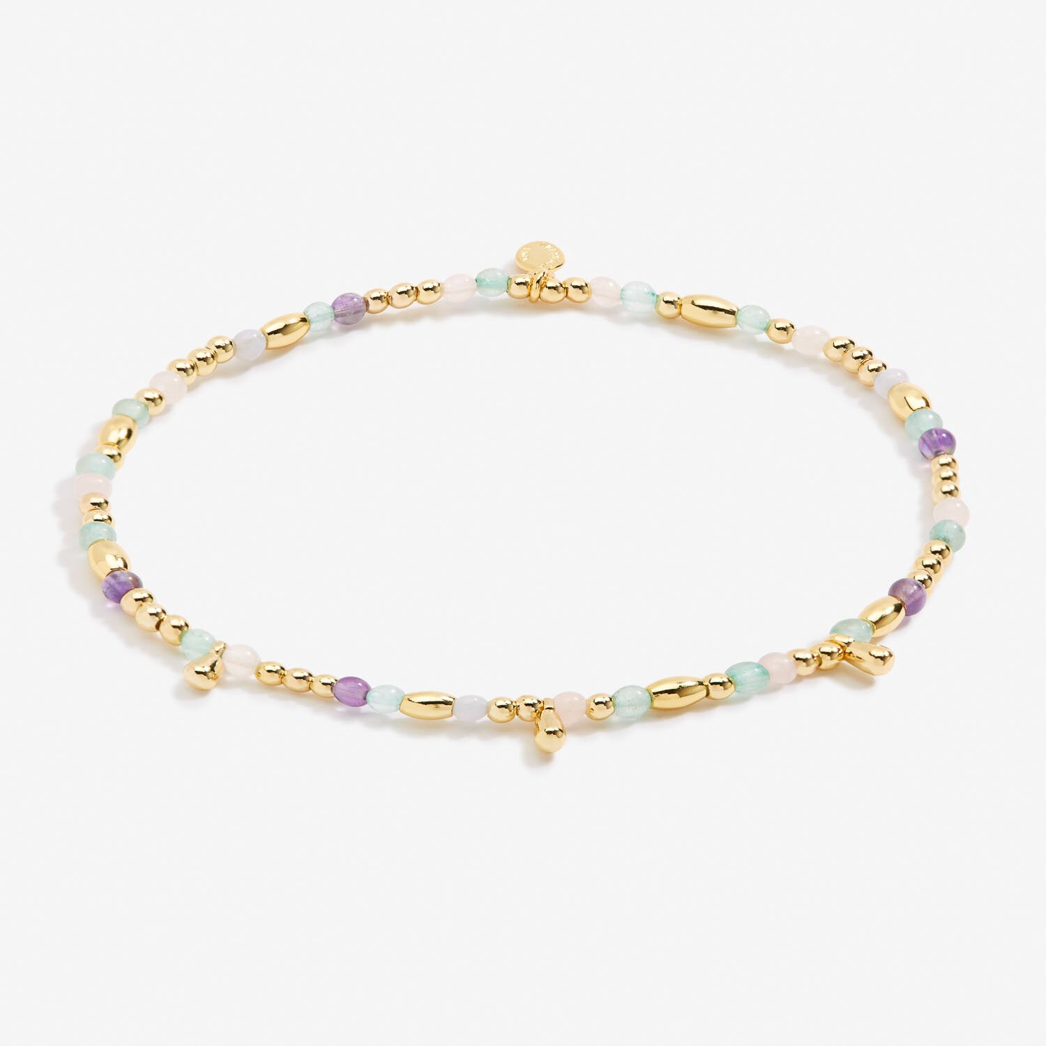 Threaded with semi-precious gemstones and adorned with silver-plated and gold-plated charms, this anklet features a stretch design for the perfect fit every time. Wrapped around a blush pink and gold card, it’s ready to be gifted or added to your own collection as you create unforgettable, sun-soaked memories.