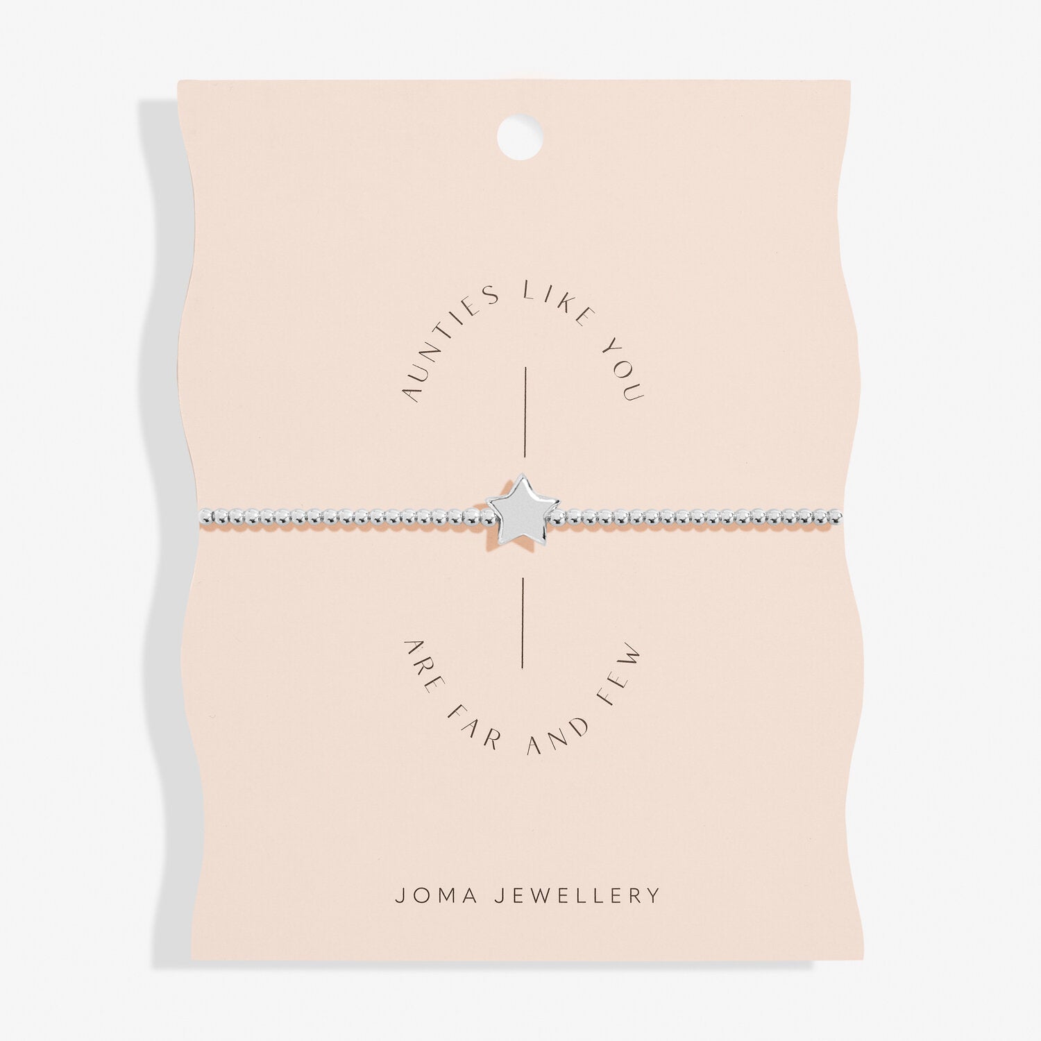 Featuring shimmering silver-plated beads and a delicate star charm, this bracelet symbolises the eternal bond you share. It comes wrapped around a wave-edge card, ready for gifting, making it a meaningful and thoughtful gesture. Designed in the UK, this bracelet is a sweet reminder of how special an Aunty truly is. One size fits all, making it a versatile and treasured token.