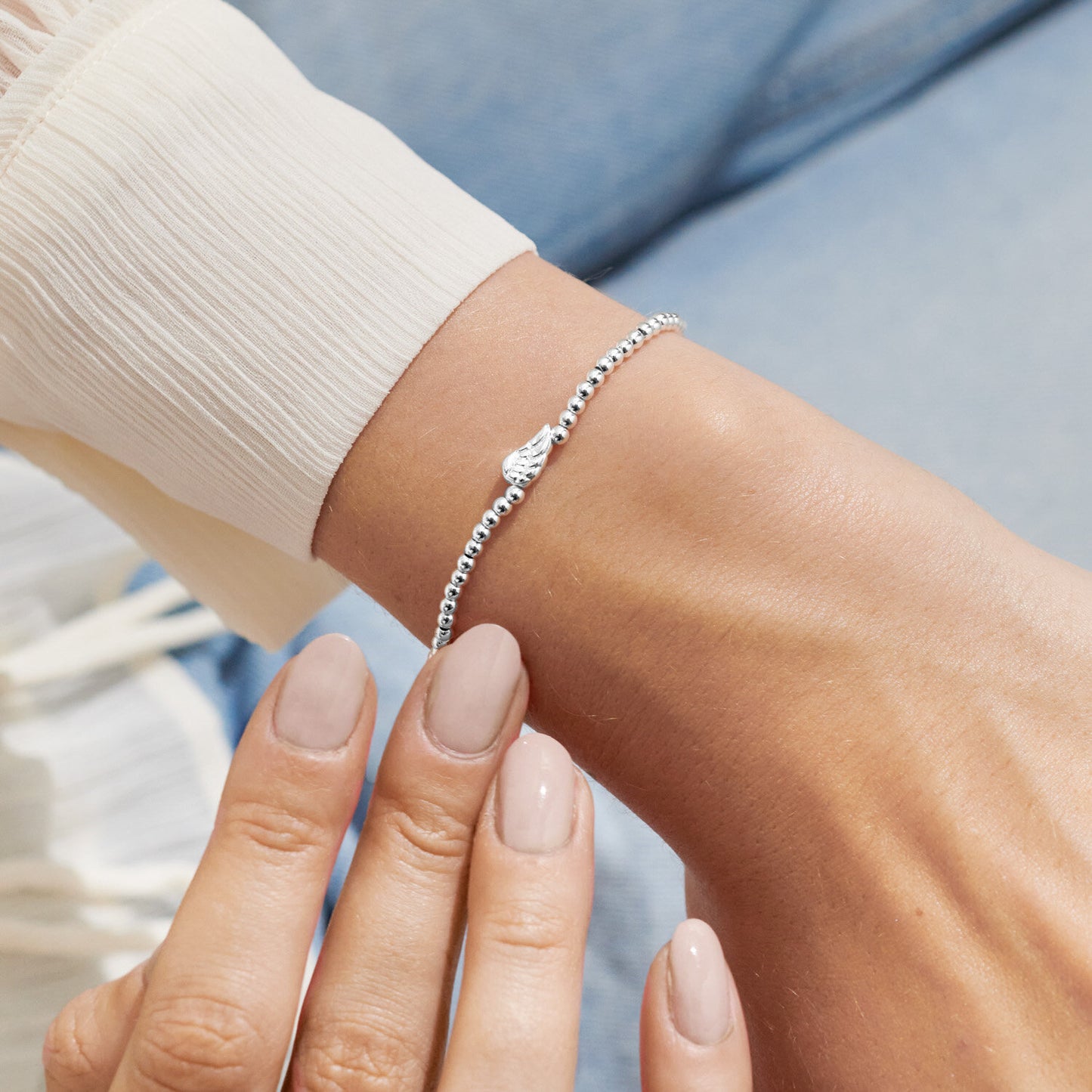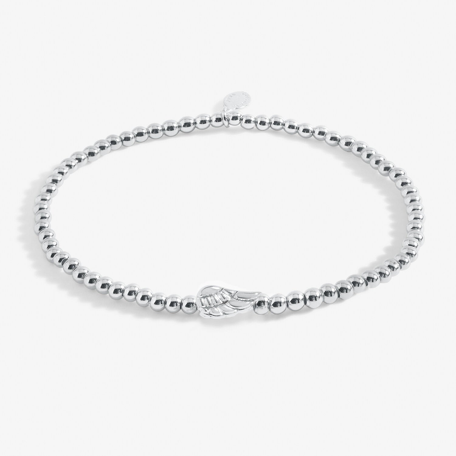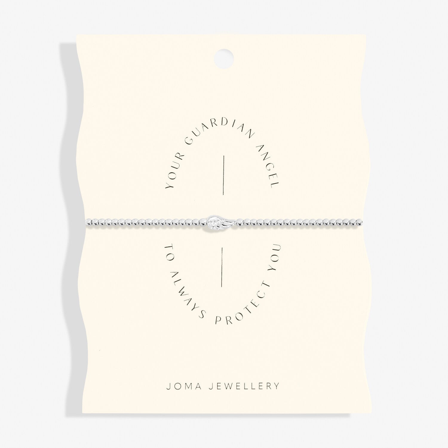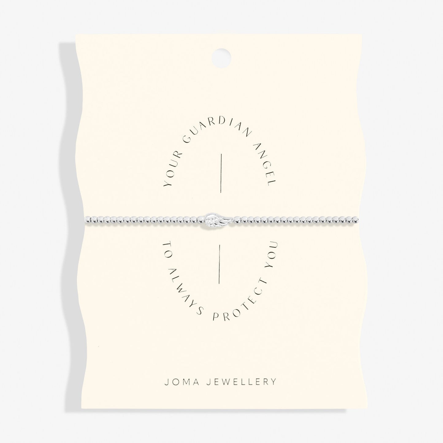 Crafted from silver-plated metal, this bracelet features shimmering beads and a delicate angel wing charm, symbolising protection and love. The bracelet comes presented on a beautifully designed wave-edge card, making it the perfect gift for any occasion. Whether your loved one is moving away or going through a difficult time, this piece serves as a thoughtful reminder that they’ll always be safe in your heart.