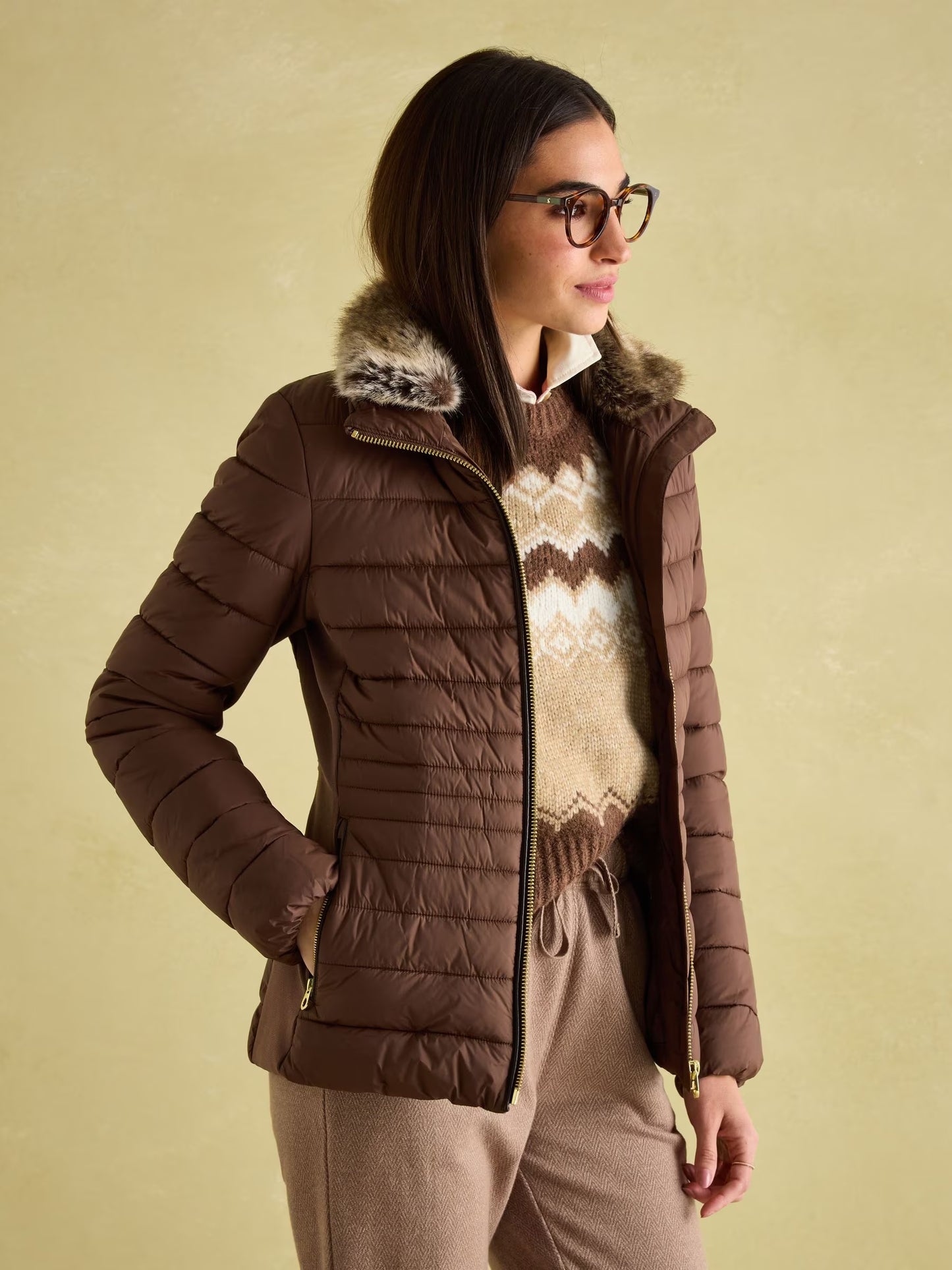 Joules Beckley Padded Showerproof Jacket with Detachable Faux Fur Trim