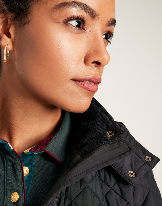 Joules Chatsworth Showerproof Diamond Quilt Coat is the perfect companion for outdoor adventures.