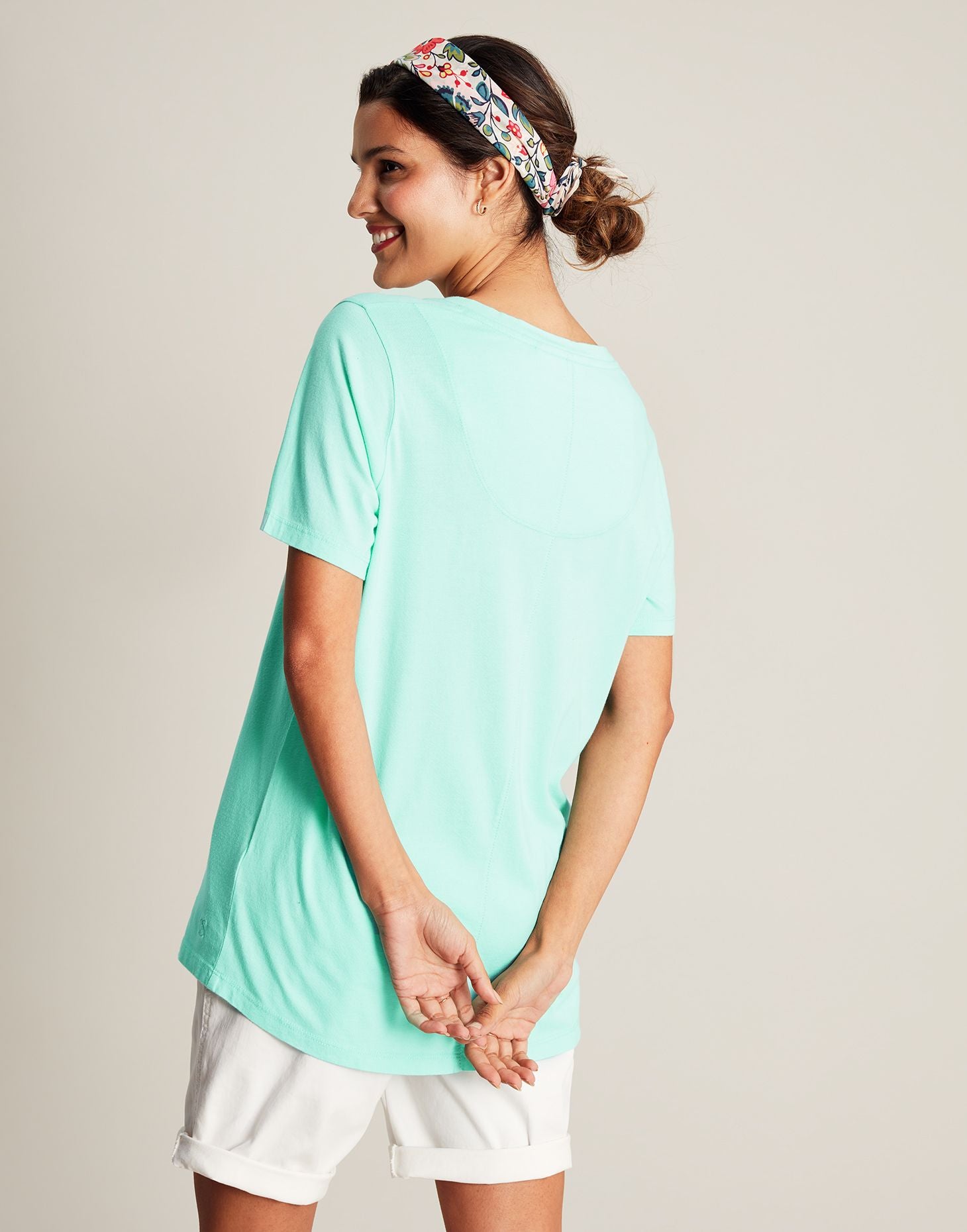 With its flattering V-neck and curved hem, this T-Shirt is designed to be a go-to staple in your wardrobe.