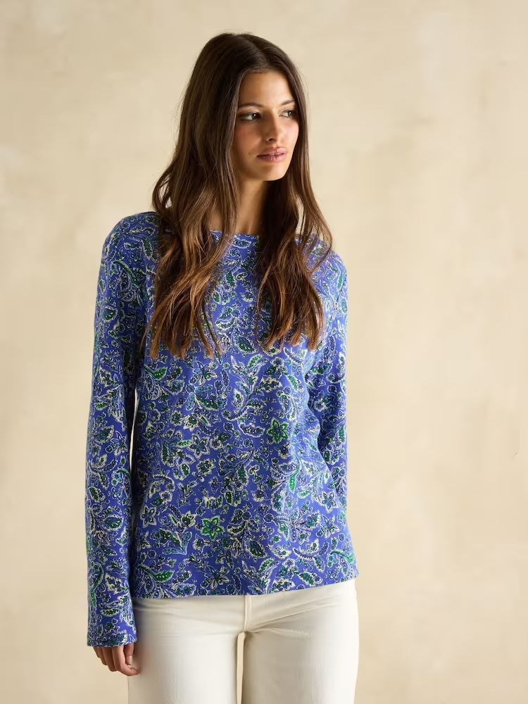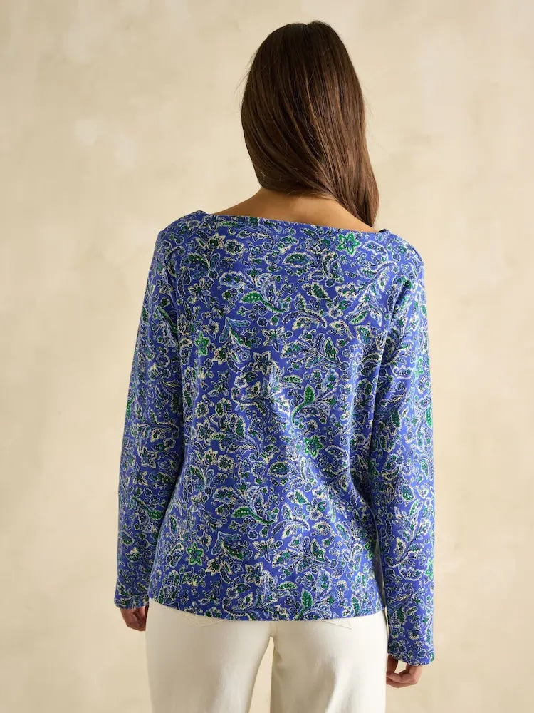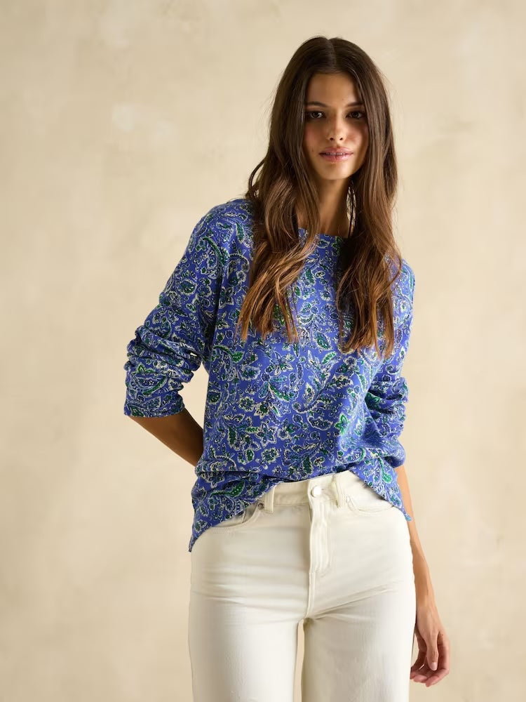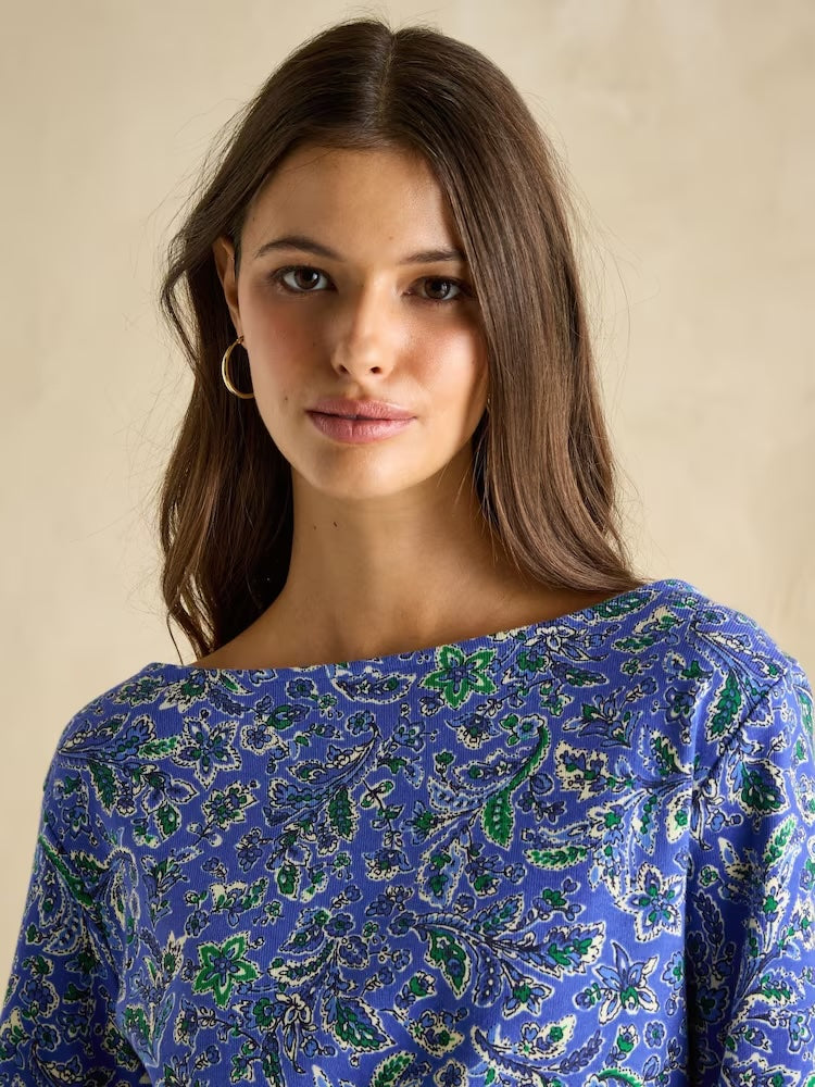 Made with a heavierweight cotton jersey, this top boasts a softer touch and a more relaxed fit. Featuring a wider boat neck and shorter length, it's perfect for everyday wear. The timeless striped design and Joules tab on the sleeve make it a classic piece from your favourite brand.
