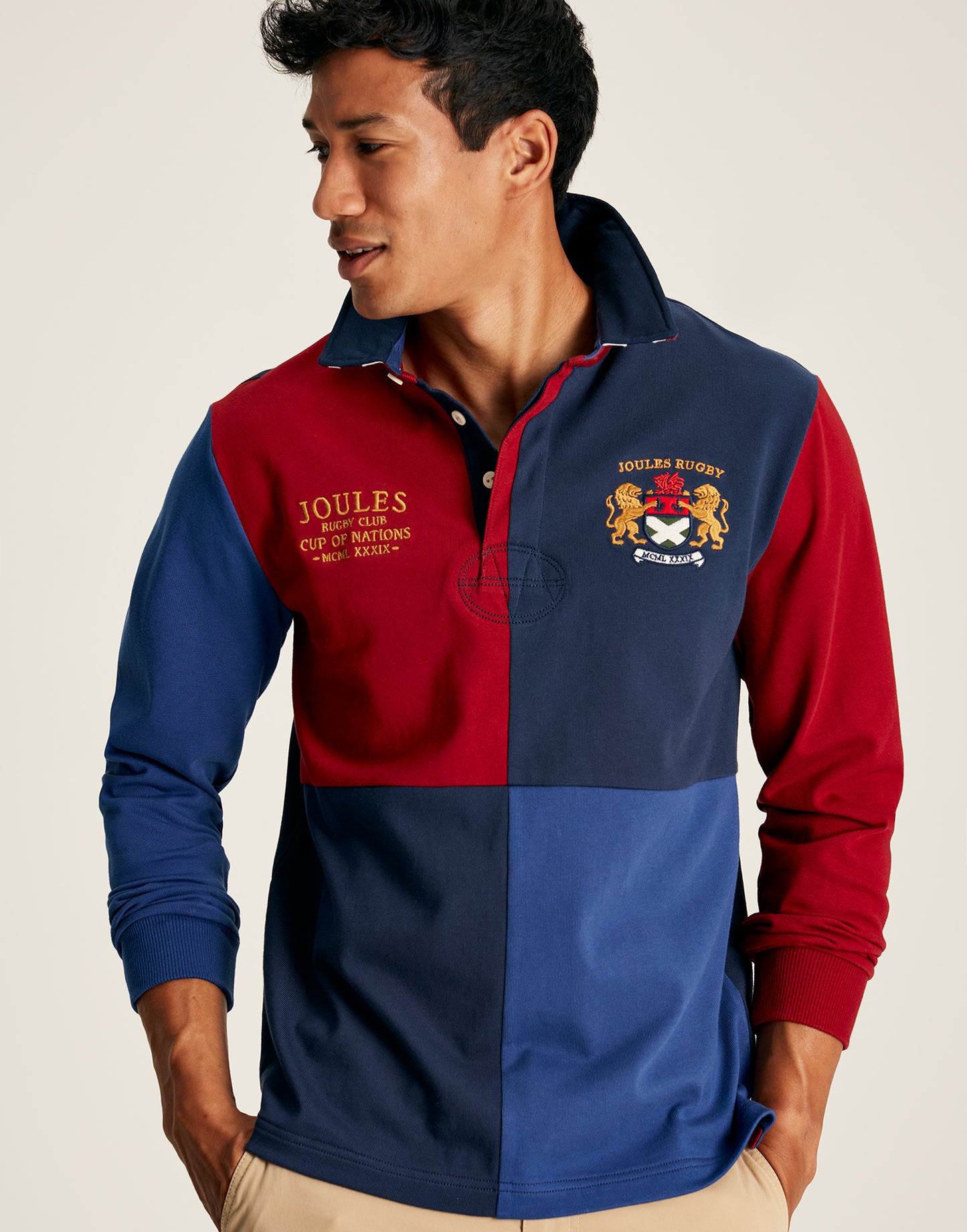 Crafted from 100% cotton fabric, this stylish shirt has a long-sleeved design for every season, as well as Joules embroidery, colour-blocking, and an applique Union Jack accent for a classic finish. Perfect for sports or casual wear.