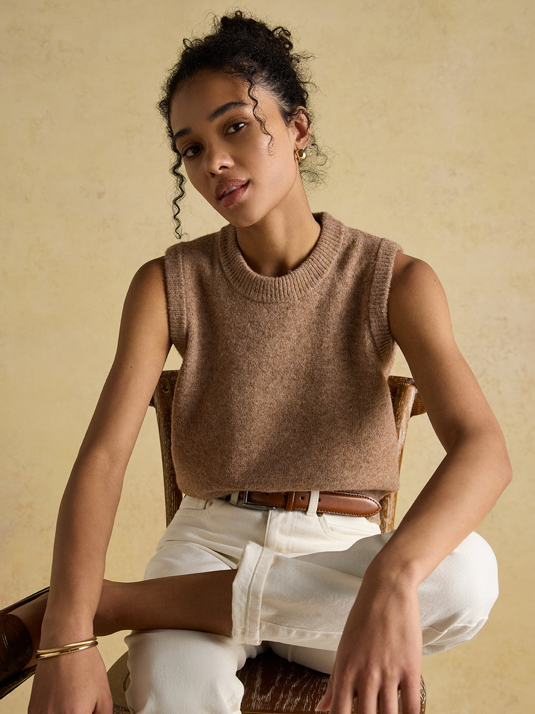 Its versatile design allows you to wear it on its own during warmer months with shorts, or layer it over a blouse or slim-fit top when the temperatures drop. With a variety of colours to choose from and a ribbed neck, hem, and armholes, this vest will keep you stylish and comfortable.