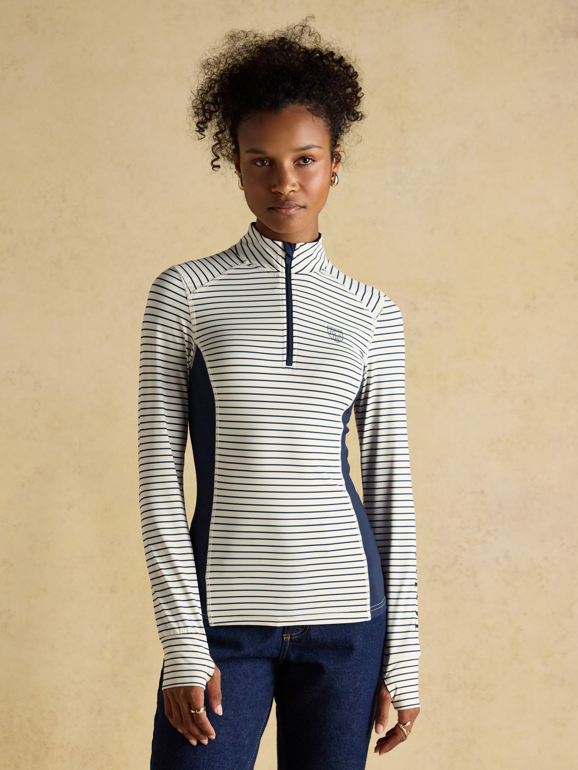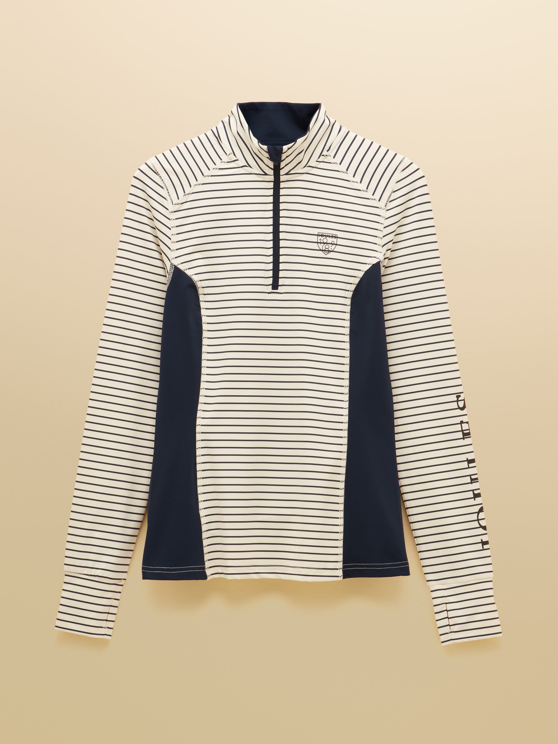 Designed with a convenient quarter-zip fastening, it features moisture-wicking and breathable fabric to keep you comfortable during activity. Plus, with Sunsafe UPF 50+ protection, you can ride confidently knowing you're shielded from the sun's rays. It's finished with a signature Joules screen print on the chest, inside placket, and sleeve for marks of quality craftsmanship.