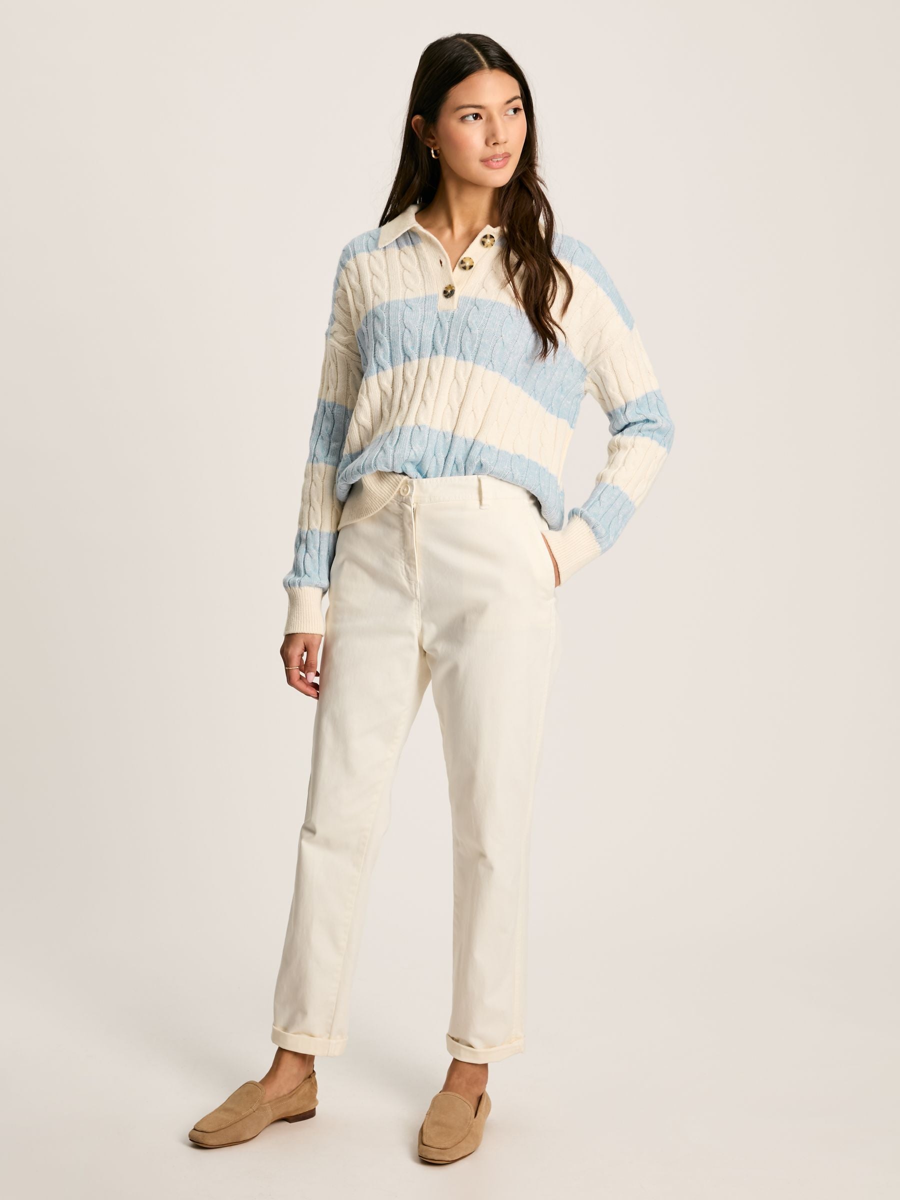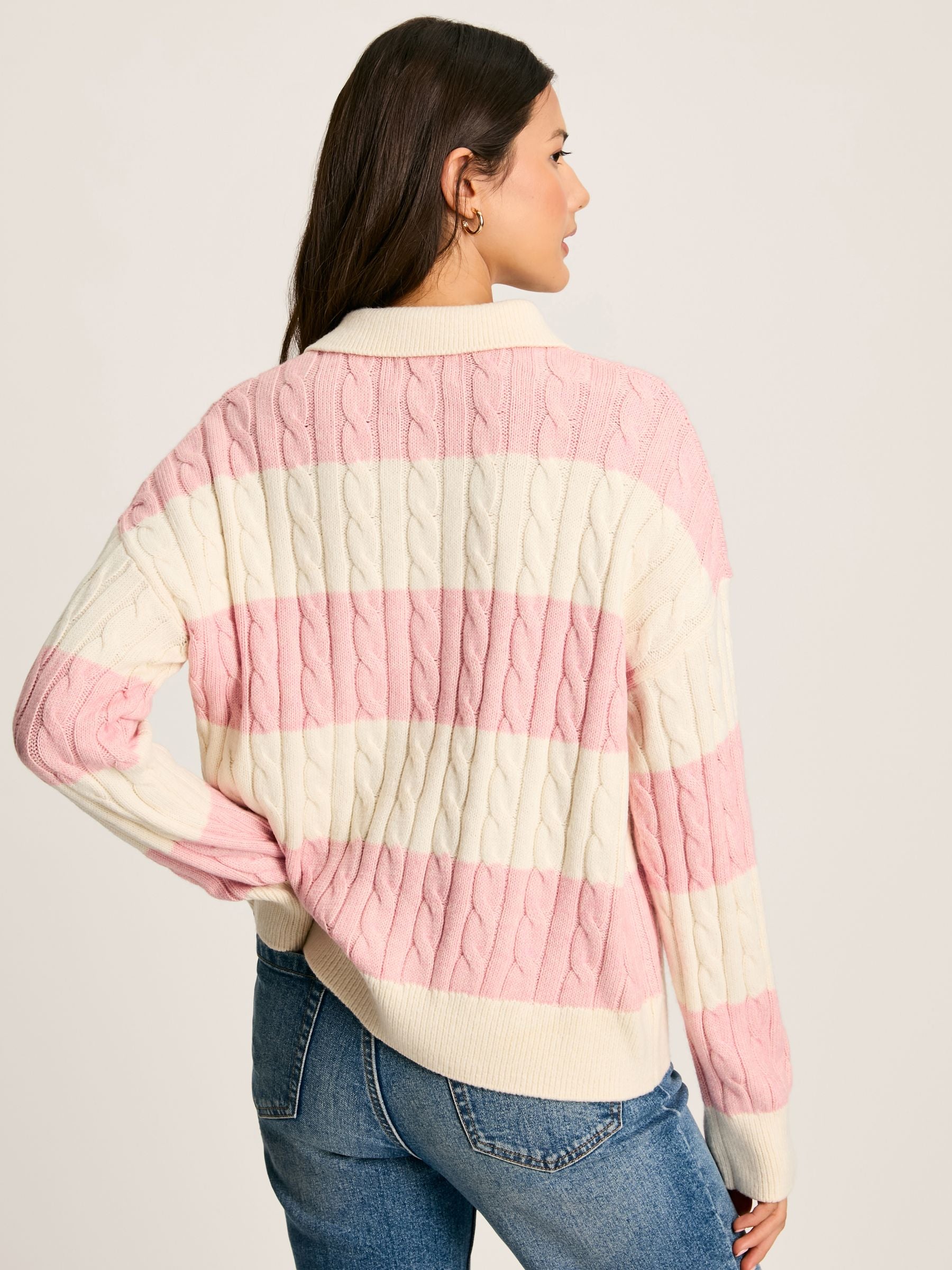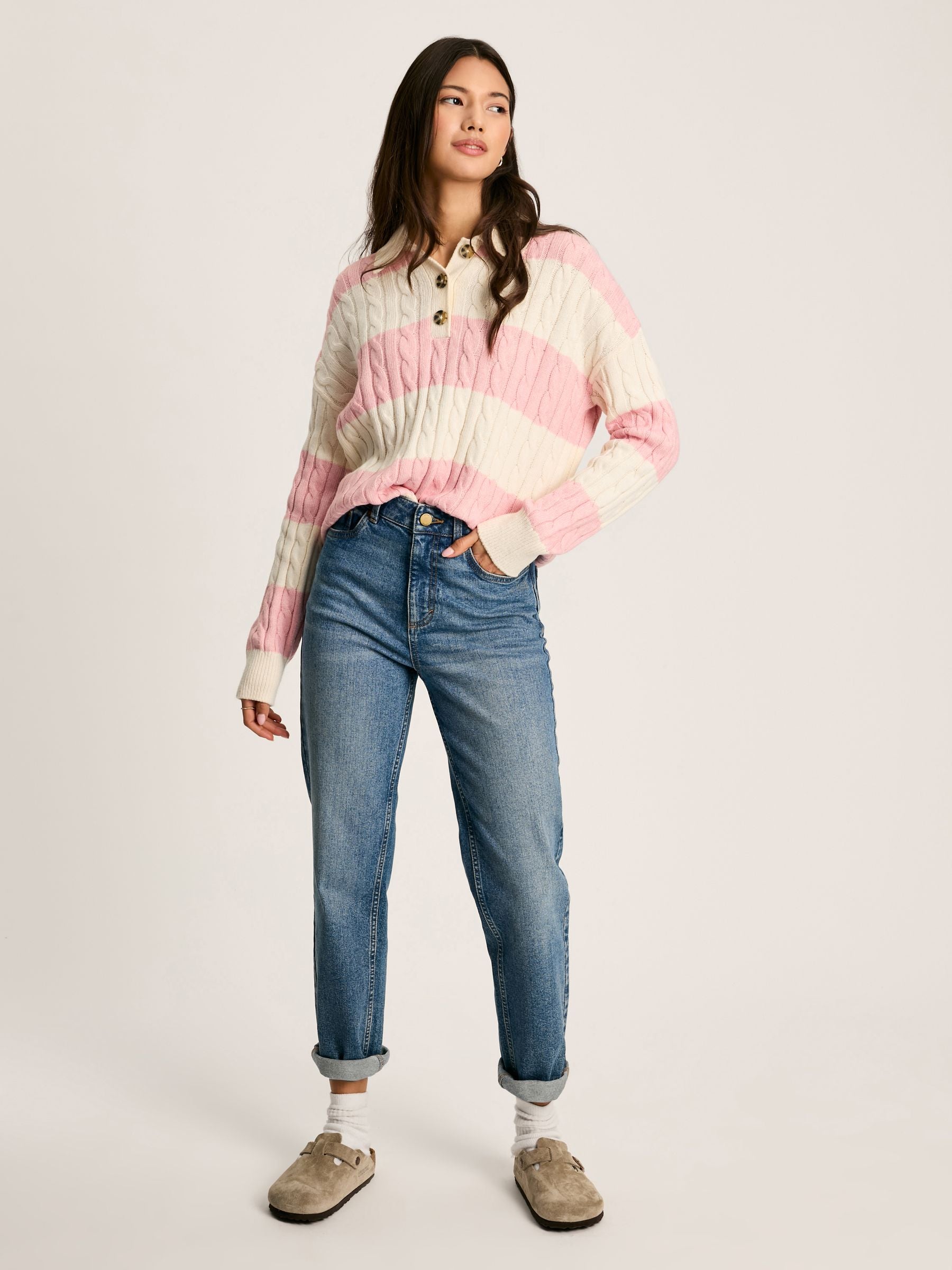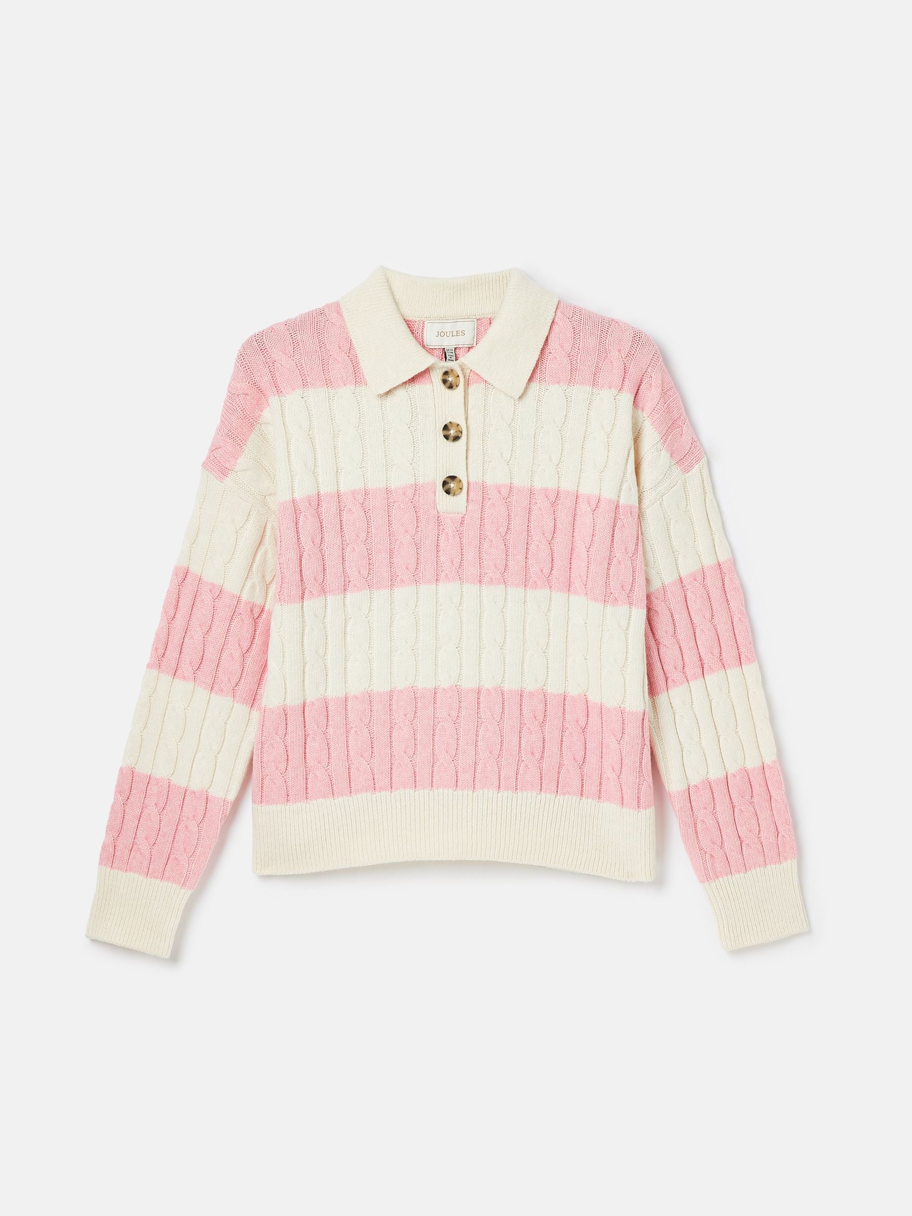 Introducing the Joules Love All Cable Knit Jumper with Button Collar.