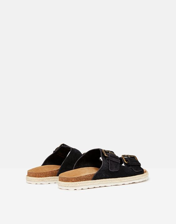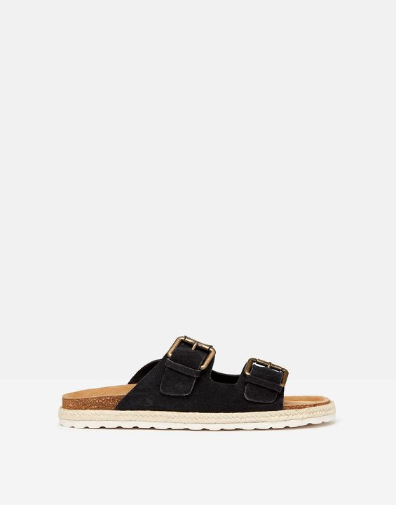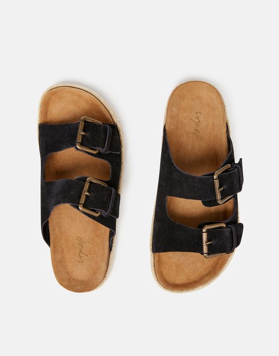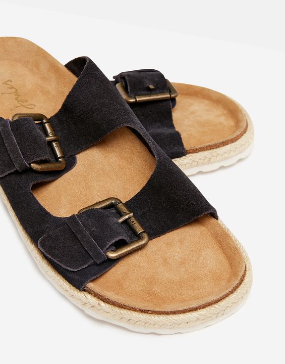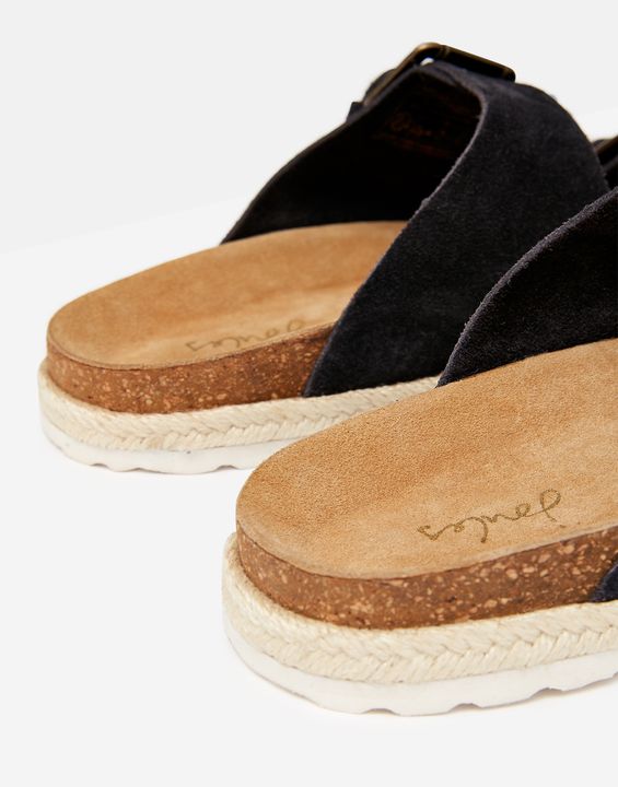 Made from supple suede leather, the sandal features two adjustable buckles for the perfect fit. A full memory foam comfort cork footbed provides superior comfort, while the ridged rubber outsole ensures excellent grip. The single jute-wrapped outsole and Joules scripting add a stylish touch. Plus, you can feel good about your purchase knowing that it supports sustainable leather manufacturing.