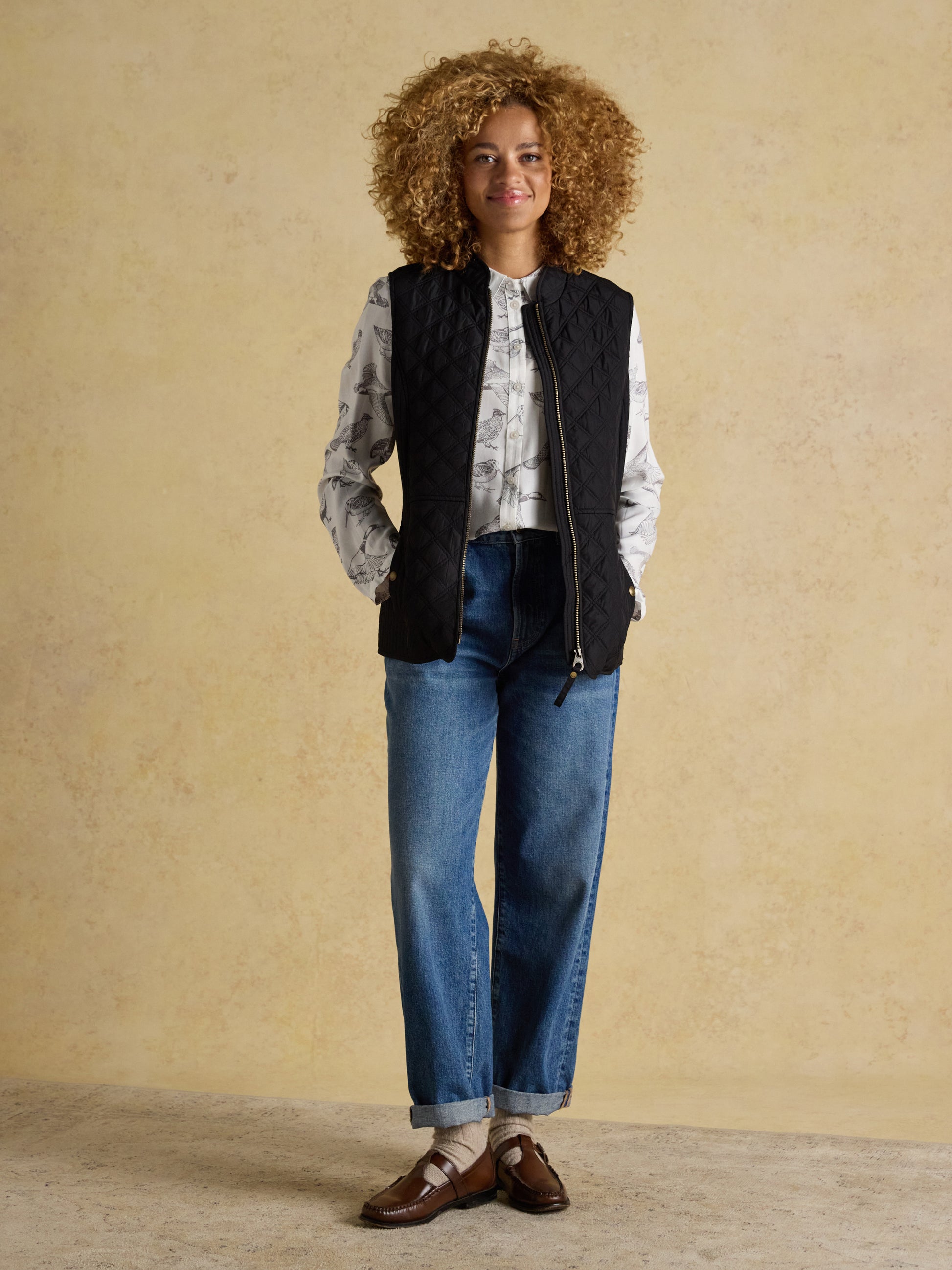 Its diamond quilting, zip-through fastening, and welt pockets with poppers make it both stylish and functional. Fitted side panels and an elasticated back channel ensure a comfortable and flattering fit. Perfect for town or countryside adventures.