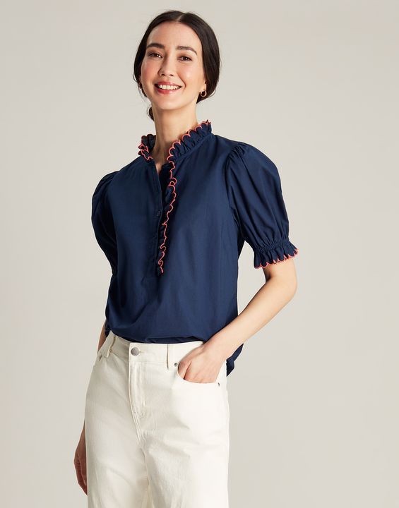 The Joules Olivia Scallop Blouse is the perfect choice for stylish and versatile everyday dressing.