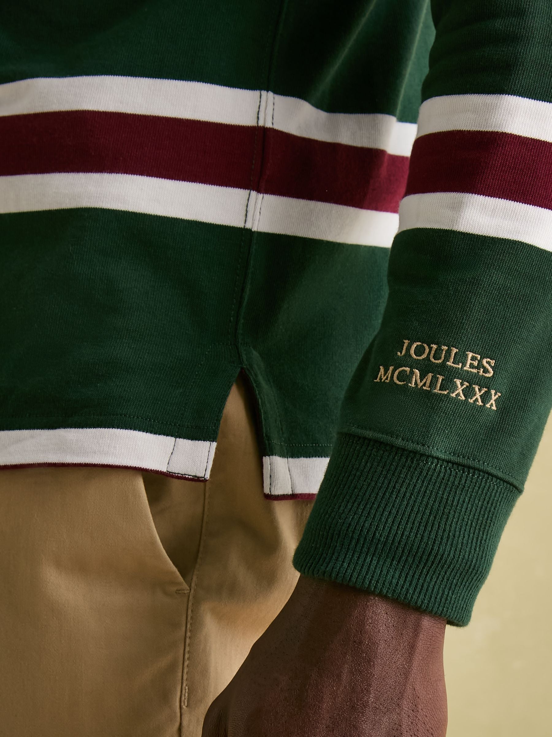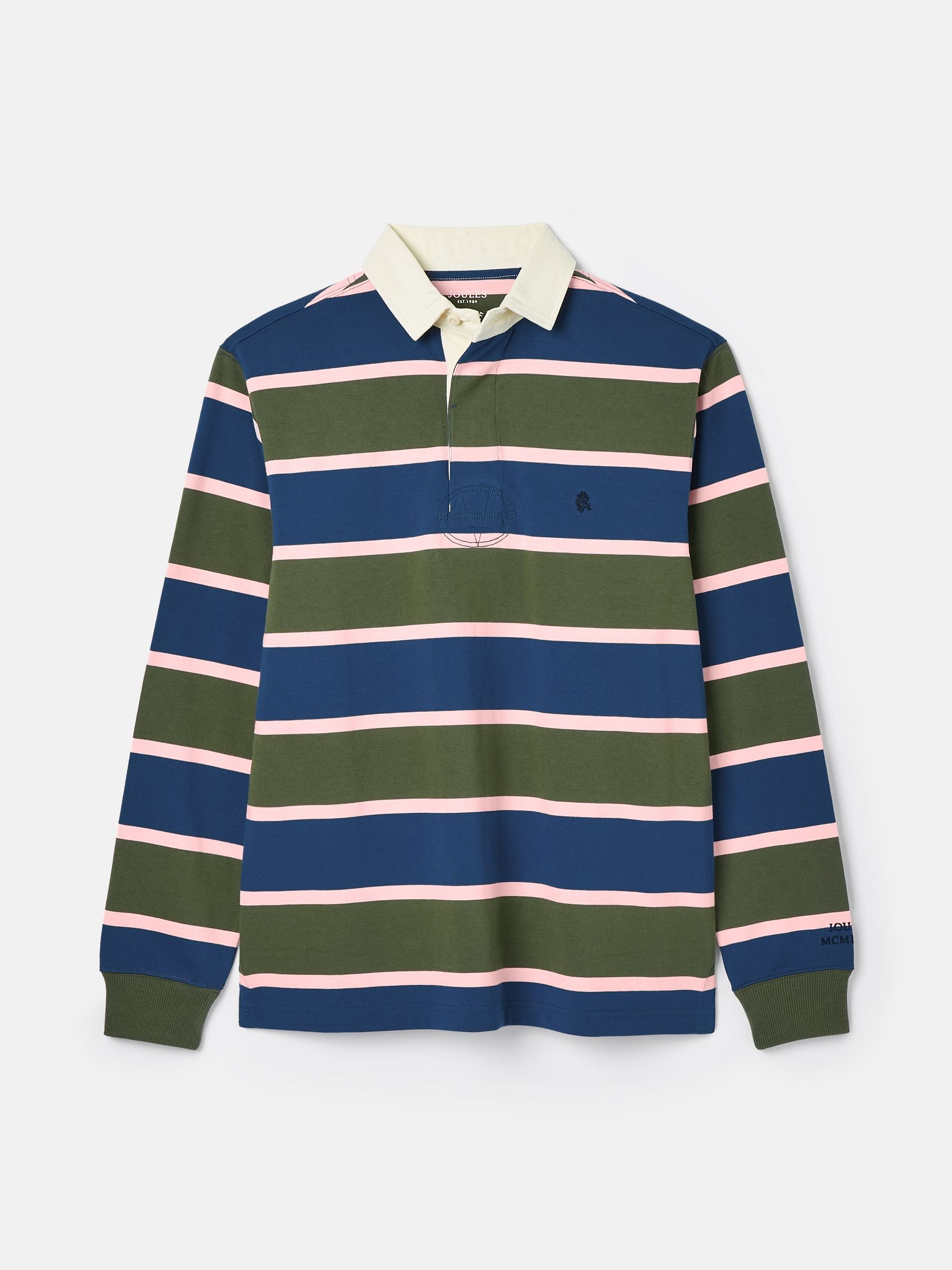 Joules Onside Rugby Shirt is crafted from soft jersey, built to last, and has long sleeves making it great for layering and has a half button placket with a single exposed button. The collar has multi-stitch detailing underneath, the cuffs are ribbed for comfort and there's a subtle embroidered hare to the chest. To ensure it goes with anything in your wardrobe it's adorned in a classic stripe that will add a touch of style to the everyday.