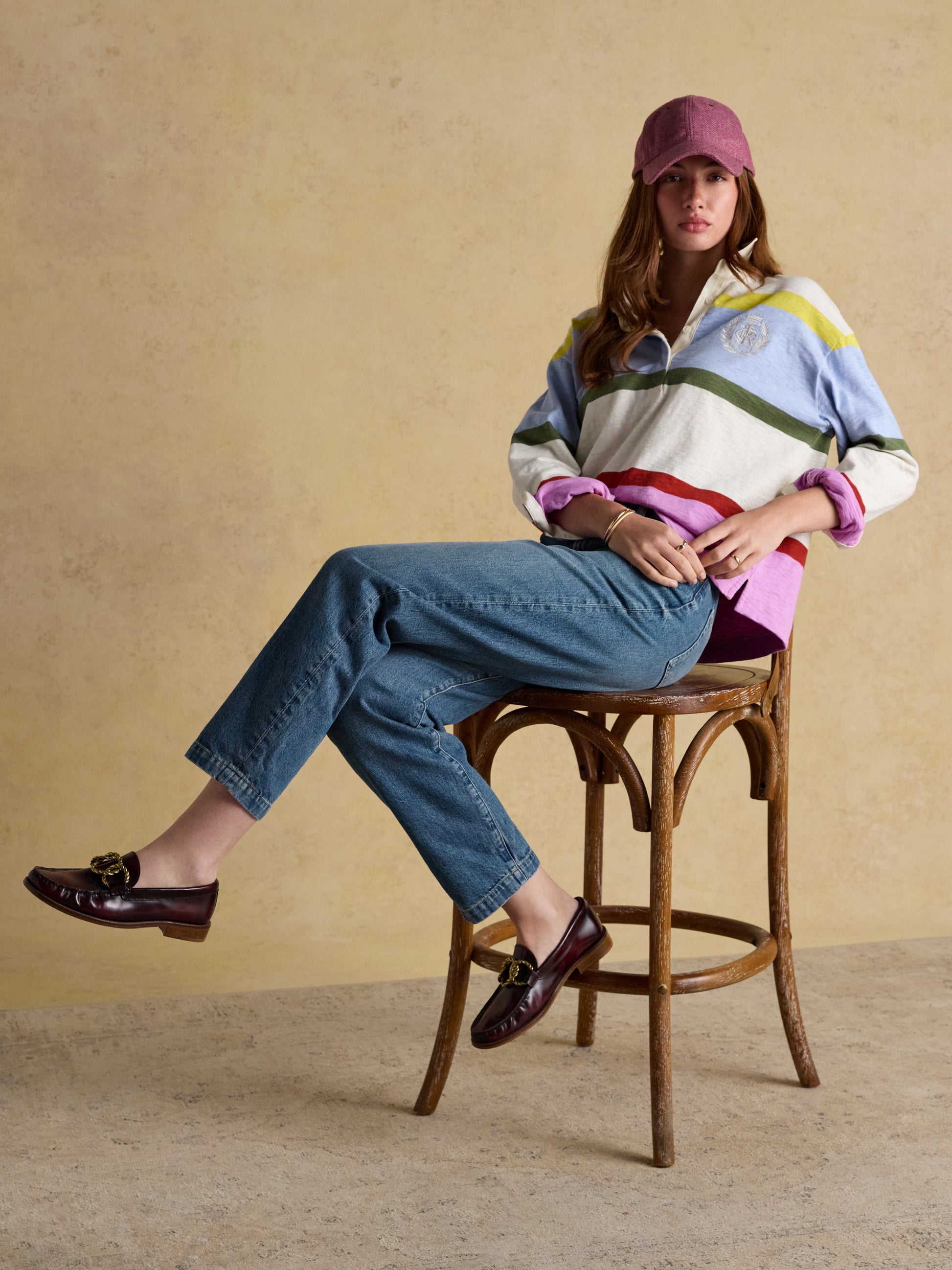 Featuring a classic peak and breathable eyelets, it ensures comfort throughout the day. The adjustable strap with metal branding allows a tailored fit, making it a versatile accessory that elevates any outfit with subtle sophistication.
