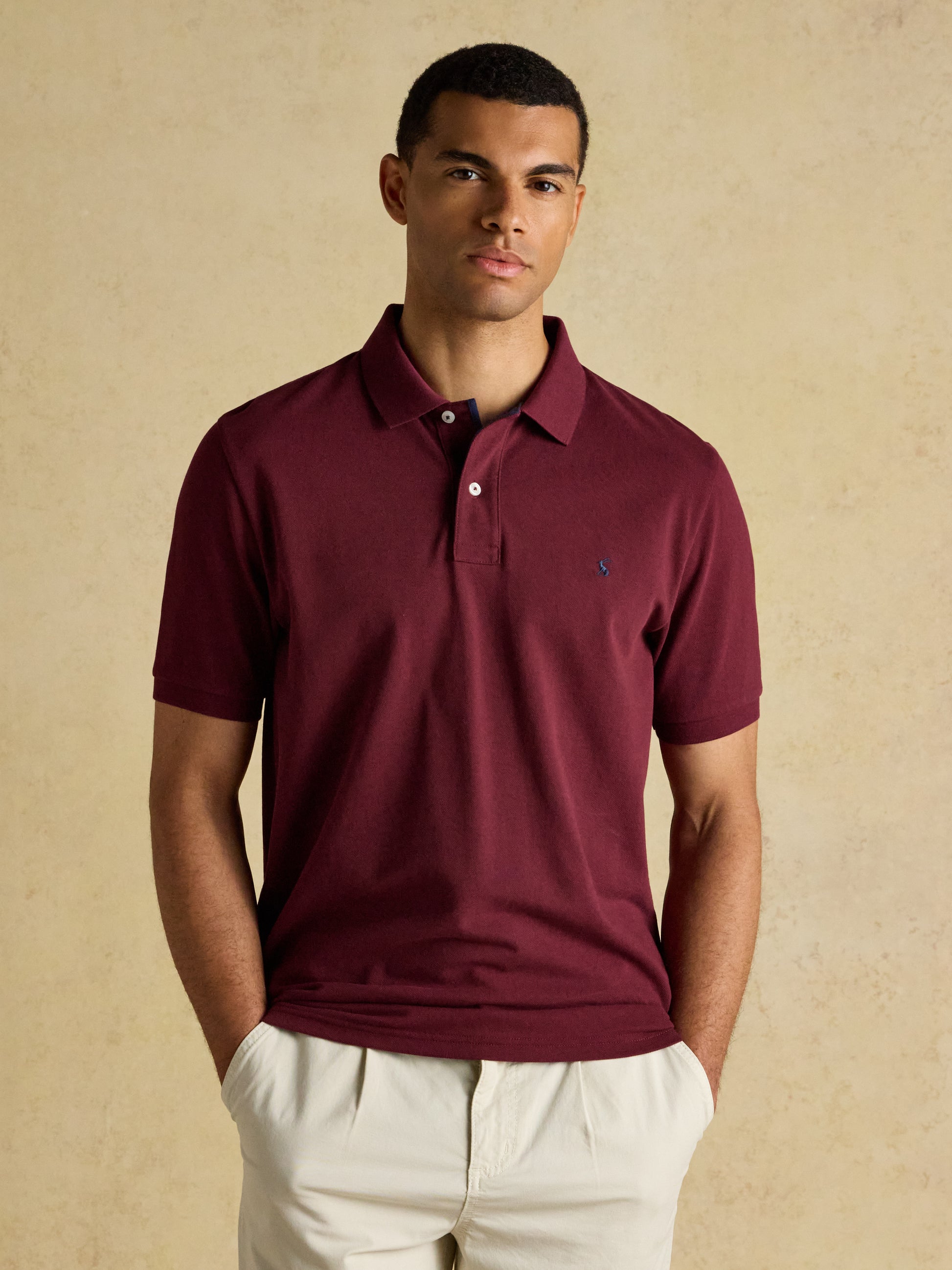 Made from hardwearing yet comfortable cotton pique, it's perfect for anything from laid-back weekends to family shindigs. Features include short sleeves, a button placket, branded undercollar, and embroidered hare. Available in a variety of dashing colours.