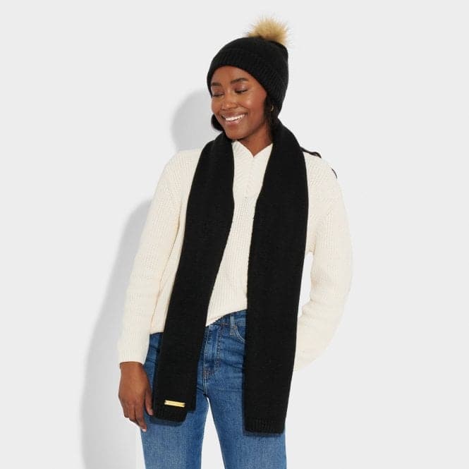 This luxurious set is the perfect blend of warmth and style, crafted from a soft, chunky knit material that keeps you cosy while elevating your look with sophistication. The classic look offers versatility, making it a great addition to any wardrobe. Whether you're out for a casual walk, running errands, or attending a festive event, this set effortlessly enhances your outfit. The hat is finished with a playful faux fur pompom and a gold-tone Katie Loxton logo disc, adding refined charm and quality to the design.